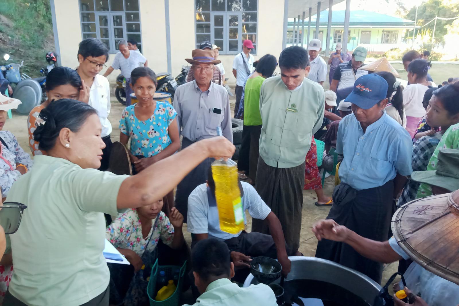 ထိုသို့ စားအုန်းဆီများ ရောင်းချရာတွင် စားအုန်းဆီ ပိဿာ (၂၂၀၀) အား မြို့ပေါ်ရပ်ကွက်များမှ ဒေသခံပြည်သူများကို (၁) ပိဿာလျှင် (၅၇၀၀) ကျပ်နှုန်းဖြင့် ကာလပေါက်ဈေးထက် ဈေးသက်သာစွာ ရောင်းချပေးခဲ့ပြီး ရောင်းချရာနေရာများသို့ မြို့နယ်စီမံအုပ်ချုပ်ရေးအဖွဲ့ဥက္ကဋ္ဌ ဦးအုန်းဌေးနှင့် အဖွဲ့ဝင်များ၊ မြို့နယ်အဆင့်ဌာနဆိုင်ရာ တာဝန်ရှိသူများက ကြီးကြပ်ဆောင်ရွက်ခဲ့ကြောင်း သိရသည်။