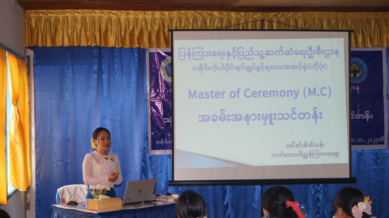 သင်တန်းတွင် ပြန်ကြားရေးနှင့်ပြည်သူ့ဆက်ဆံရေးဦးစီးဌာန၊ ပအိုဝ်းကိုယ်ပိုင်အုပ်ချုပ်ခွင့်ရဒေသအဆင့်ရုံးမှ လက်ထောက်ညွှန်ကြားရေးမှူး ဒေါ်ခင်အိအိသန်းက အမှာစကားပြောကြားရတွင် အခမ်းအနားတစ်ခု အောင်မြင်ချောမောစွာ ပြီးမြောက်နိုင်ရေးအတွက် အခမ်းအနားမှူးသည် ဦးဆောင်သူဖြစ်ပါကြောင်း၊ အခမ်းအနားမှူးကောင်းတစ်ယောက်ဖြစ်ရန်အတွက် အဓိကအရည်အချင်းမျာဖြစ်သည့် သတ္တိ၊ သတိ၊ သိတတ်မှု၊ ရုပ်ပိုင်းဆိုင်ရာများနှင့် ကိုယ်ဟန်အမူအရာ၊ ကျန်းမာရေး၊ စိတ်ပိုင်းဆိုင်ရာ၊ အသံပိုင်းဆိုင်ရာနှင့် စကားပြောစတိုင်၊ လေယူလေသိမ်းများ၊ ကောင်းမွန်ရန်လိုအပ်ကြောင်းနှင့် အခမ်းအနားမှူးအမျိုးမျိုးကို ဦးဆောင်နိုင်သည့် အခမ်းအနားမှူးကောင်းတစ်ယောက်ဖြစ်လာရန် ကြိုးပမ်းစေလိုကြောင်း ပြောကြားသည်။ အဆိုပါသင်တန်းကို တစ်ရက်တာ ဖွင့်လှစ်ပို့ချခဲ့ခြင်းဖြစ်ပြီး ဟိုပုံးမြို့နယ် အခြေခံပညာကျောင်းများမှာ ကျောင်းအုပ်ဆရာ/ ဆရာမ(၃၀)ဦးတက်ရောက်ခဲ့ကြောင်း သိရသည်။