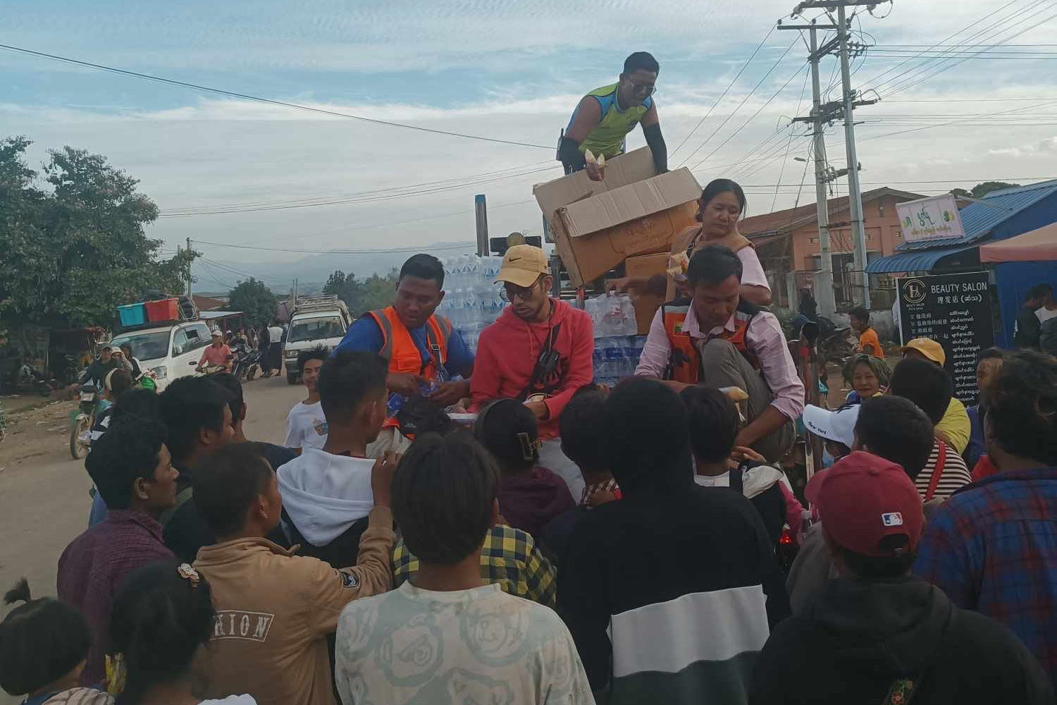 ရှမ်းပြည်နယ်(မြောက်ပိုင်း) လားရှိုးမြို့သို့ ယမန်နေ့က ရောက်ရှိလာသည့် ယာယီနေရပ်စွန့်ခွာသူများကို စေတနာရှင်အလှူရှင်များက ထမင်းထုပ်များ ရေသန့်ဘူးများ ပေးဝေလျက်ရှိကြောင်း သိရသည်။