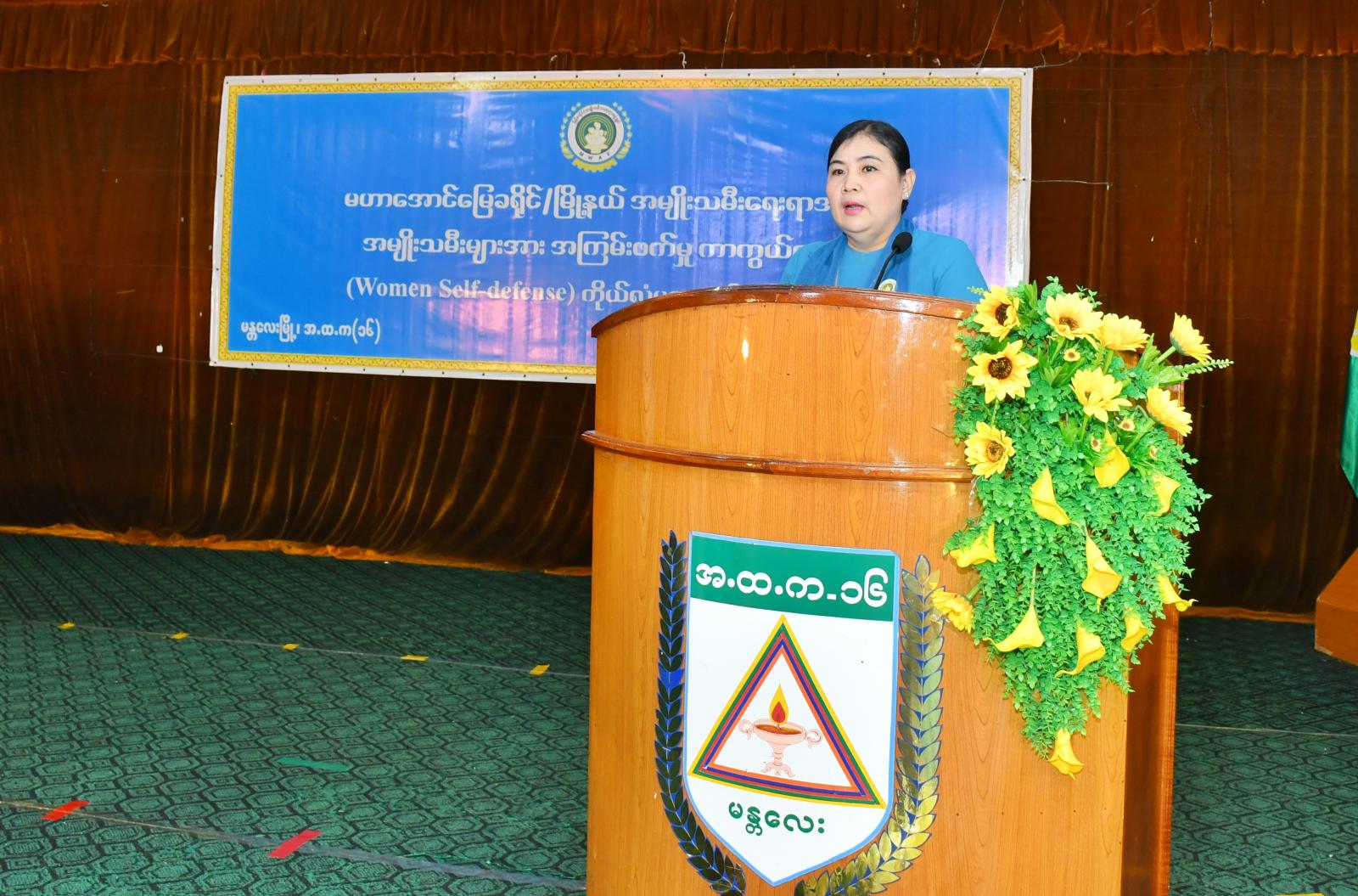 မန္တလေးတိုင်းဒေသကြီး၊ မဟာအောင်မြေခရိုင်နှင့် မြို့နယ်အမျိုးသမီးရေးရာအဖွဲ့တို့ ပူးပေါင်းဖွင့်လှစ်သော အမျိုးသမီးများအပေါ်အကြမ်း ဖက်မှုကာကွယ်ရေး (Women Self- defense) ကိုယ်လုံပညာသင်တန်းဆင်းပွဲအခမ်းအနားကို ယနေ့နံနက် ၁၀ နာရီအချိန်က မန္တလေး၊ ချမ်းအေးသာစံမြို့နယ်၊ အမှတ်(၁၆) အခြေခံပညာအထက်တန်းကျောင်း၊ ပညာရတနာကျောင်းဆောင်တွင် ကျင်းပပြုလုပ်ခဲ့သည်။