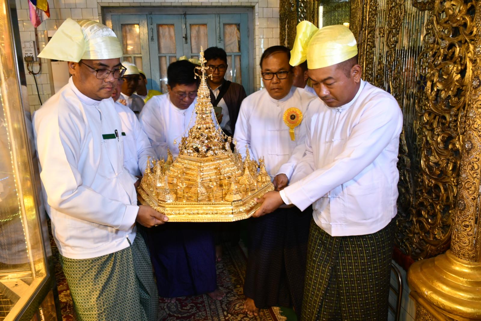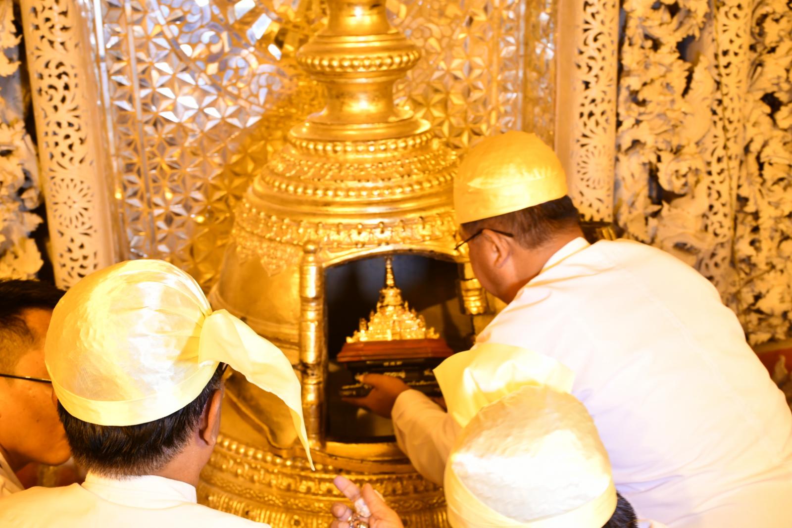 ယင်းနောက် တာဝန်ရှိသူများနှင့် ဂေါပကအဖွဲ့ဝင်များက ဗုဒ္ဓမြတ်စွယ်တော်နှင့် ပတ္တမြားစေတီတော်၊ မူလကြေးစေတီတော်၊ ရွှေကလပ်တော်၊ ရွှေစန္ဒကူးကြုတ်တော်၊ စိန်စေတီတော်တို့ကို တစ်နှစ်တာ ပြန်လည်ကိန်းဝပ်စံပယ်တော်မူသည့် ဂန္ဓကုဋီတိုက်အတွင်းသို့ ပြန်လည်ပင့်ဆောင်ပူဇော်ကြပြီး အောင်ပွဲအခမ်းအနားကို ဗုဒ္ဓသာသနံစိရံတိဌတုသုံးကြိမ်ရွတ်ဆိုဆုတောင်း၍ ပိတ်သိမ်းကာ ဝတ်သင်းများက "ဒိသာဖရဏ"ဆုတောင်းမေတ္တာပို့သကြကြောင်း သိရသည်။