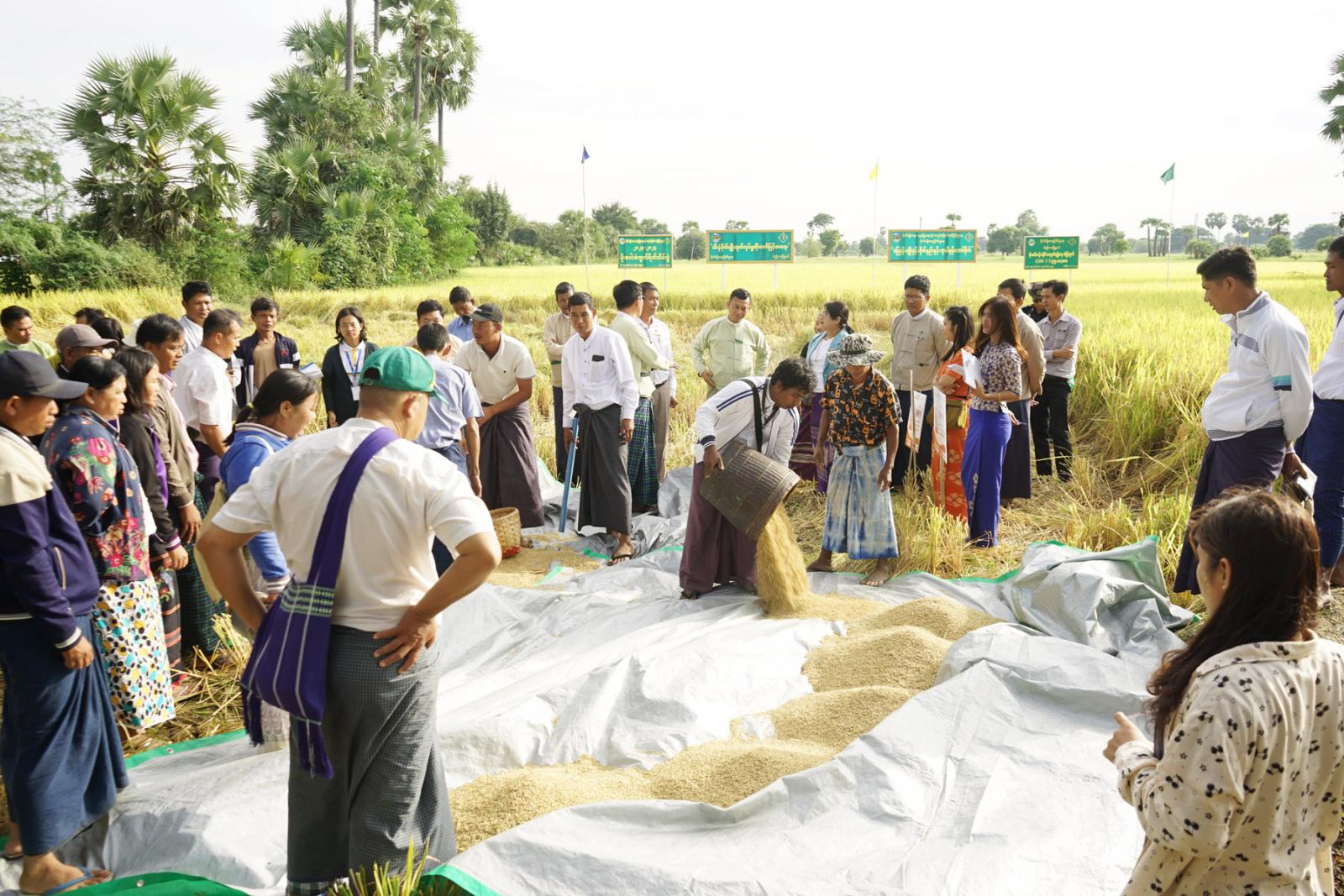 မန္တလေးတိုင်းဒေသကြီး၊ မိတ္ထီလာမြိုနယ်တွင် GW-11 မိုးစပါးစံကွက် ရိတ်သိမ်းပွဲကို ယမန်နေ့မွန်းလွဲ ၃ နာရီအချိန်က ညောင်ကိုင်းကျေးရွာ ကွင်းအမှတ် ၈၅၅၊ ဦးပိုင်အမှတ် ၂၁/၂ ရရှိ တောင်သူ ဦးဝင်းအောင်၏ စိုက်ဧက နှစ်ဧကတွင် ကျင်းပခဲ့ကြောင်း သိရသည်။