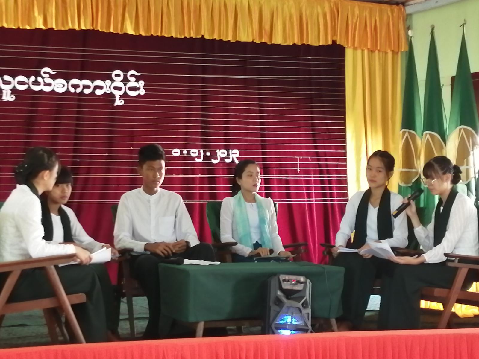 ထို့နောက် လူငယ်စကားဝိုင်းကို ဒုတိယဦးစီးမှူးဒေါ်နန်းအေးအေးသိန်းက ဦးဆောင်ဆွေးနွေးသူအဖြစ် စီစဉ်ဆောင်ရွက်၍ Grade- 10 မှ မောင်သန့်ထက်ဇော်၊ နန်းယေအိုင်ခုန်းကျို၊ နန်းဆိုင်ဟတ်၊ မနွေးထွေးအောင်၊ နန်းရွှေအိမ်တို့က “လူငယ်နှင့်မူးယစ်ဆေး၊ လူငယ်နှင့်စာပေဗဟုသုတ၊ လူငယ်နှင့် ဂိမ်းစွဲလန်းမှု၊ လူငယ်နှင့်ယဉ်ကျေးမှု” စသည့်ခေါင်းစဉ်များကို အသီးသီးဆွေးနွေးကြရာ တက်ရောက်လာကြသည့် ကျောင်းသား၊ ကျောင်းသူ လူငယ်လူရွယ်များက မိမိတို့၏ အမြင်များနှင့်ပတ်သက်၍ ပြန်လည်ဆွေးနွေးကာ ကျောင်းအုပ်ဆရာမကြီးဒေါ်နန်းခင်မြင့်သန်းက ကျေးဇူးတင်စကား ပြန်လည်ပြောကြားခဲ့သည်။