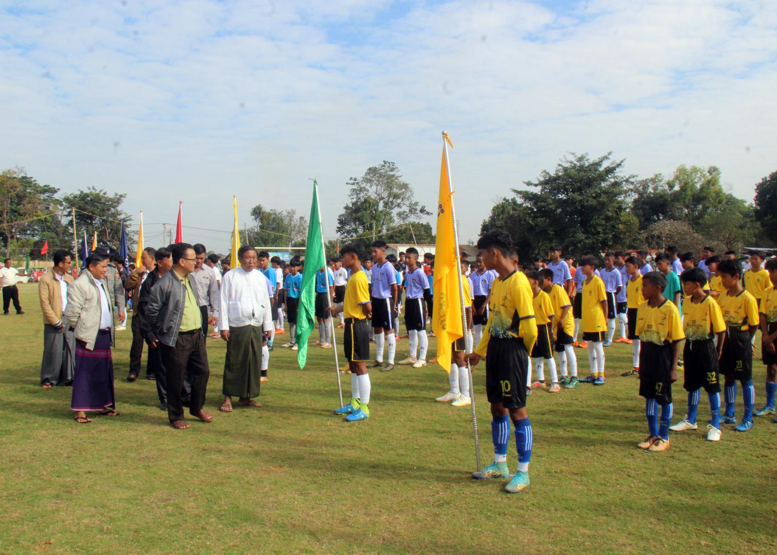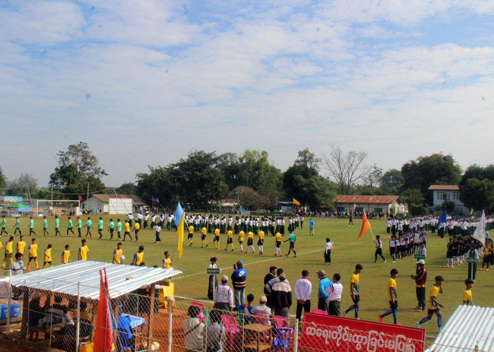 ရှမ်းပြည်နယ်တောင်ပိုင်း၊ နမ့်စန်ခရိုင်၊ နမ့်စန်မြို့နယ်တွင် မြို့နယ်ပညာရေးမှူးဖလား အခြေခံပညာကျောင်းပေါင်းစုံ အသက်(၁၆)နှစ်အောက် အမျိုးသားဘောလုံးပြိုင်ပွဲ ဖွင့်ပွဲအခမ်းအနားကို ယနေ့နံနက် ၉နာရီက မြို့နယ်ကျောက်တိုင်အားကစားကွင်းအတွင်းတွင် စည်ကားသိုက်မြိုက်စွာကျင်းပခဲ့ရာ၊ နမ့်စန်တပ်နယ်မှူး ဗိုလ်မှူးချုပ်မျိုးမင်းထွန်း၊ ခရိုင်စီမံအုပ်ချုပ်ရေးအဖွဲ့ ဥက္ကဋ္ဌဦးတင်ကျော်ဝင်း၊ မြို့နယ်စီမံအုပ်ချုပ်ရေးအဖွဲ့ ဥက္ကဌဦးကျော်မိုးနှင့် မြို့နယ်အဆင့်ဌာနဆိုင်ရာအကြီးအကဲများ၊ ဖိတ်ကြားထားသော ဧည့်သည်တော်များ၊ အားကစားနှင့်ကာယပညာဦးစီးဌာနမှ တာဝန်ရှိသူများနှင့် ပြိုင်ပွဲဝင်အားကစားသမားများ တက်ရောက်ခဲ့ကြောင်း သိရသည်။