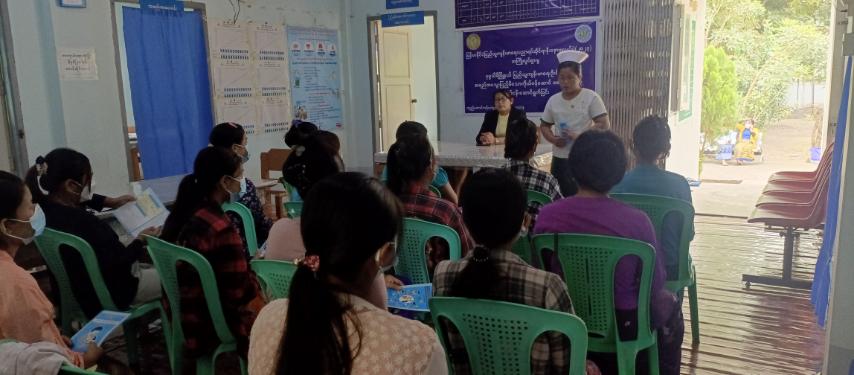 ရှေးဦးစွာ မြို့နယ်ပြည်သူ့ကျန်းမာရေးဦးစီးဌာနမှူး ဒေါက်တာသိမ့်သိမ့်ထွေးက ပြည်သူ့ကျန်းမာရေးဦးစီးဌာန၏ လုပ်ငန်းဆောင်ရွက်ချက်များ ရှင်းလင်းပြောကြားခဲ့ပြီး မြို့နယ်သူနာပြုအဆင့်-၁ ဒေါ်မိုးမိုးခိုင်က ကိုယ်ဝန်ဆောင်မိခင်များ လိုက်နာရမည့် ကျန်းမာရေး အသိပညာများကို ဟောပြောဆွေးနွေးခဲ့သည်။