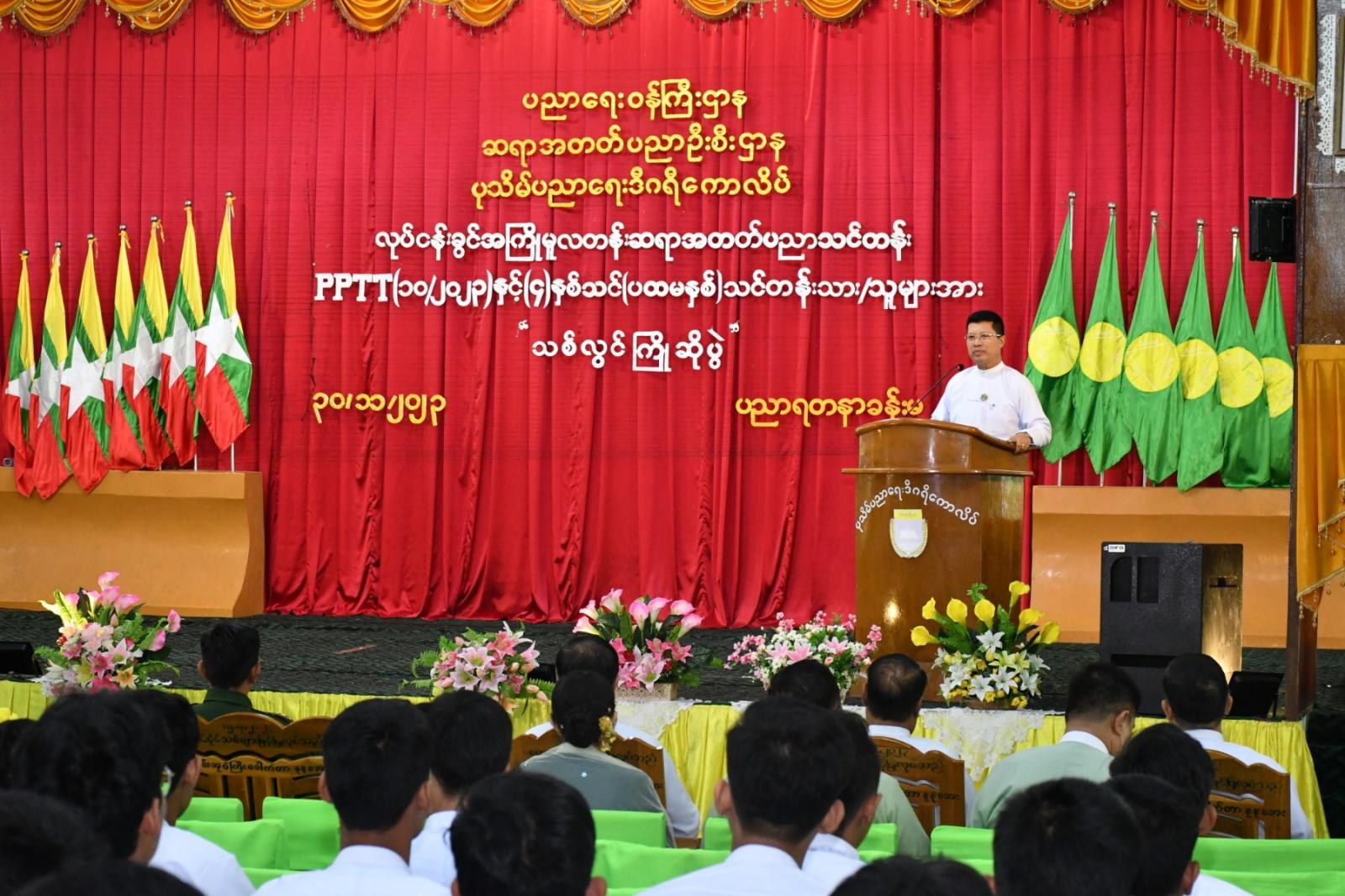 ဧရာဝတီတိုင်းဒေသကြီး၊ ပုသိမ်မြို့ပညာရေးဒီဂရီကောလိပ်၊ ပညာရတနာခန်းမ၌ လုပ်ငန်းခွင်အကြို မူလတန်းဆရာအတတ်ပညာသင်တန်း PPTT (၁၀/၂၀၂၃) နှင့် လေးနှစ်သင် (ပထမနှစ်) ကျောင်းသား၊ ကျောင်းသူများ၏ မောင်မယ်သစ်လွင်ကြိုဆိုပွဲ အခမ်းအနားကို ယမန်နေ့နံနက်ပိုင်းကပြုလုပ်ခဲ့ရာ အခမ်းအနားသို့ တိုင်းဒေသကြီးဝန်ကြီးချုပ် ဦးတင်မောင်ဝင်း၊ အစိုးရအဖွဲ့ဝင်ဝန်ကြီးများ၊ ပညာရေးကောလိပ်မှ ဆရာ၊ ဆရာမများနှင့် သင်တန်းသား၊ သင်တန်းသူများ တက်ရောက်ခဲ့ကြသည်။