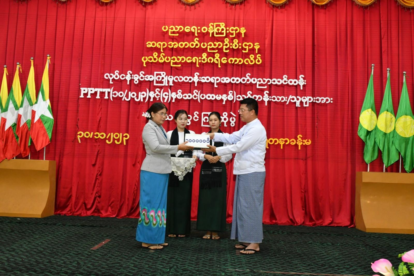 ဆက်လက်၍ ပုသိမ်ပညာရေးဒီဂရီကောလိပ်ကျောင်းအုပ်ကြီးက သင်တန်းများဖွင့်လှစ်ရခြင်းအကြောင်းများအား ရှင်းလင်းတင်ပြီးနောက် တိုင်းဒေသကြီးဝန်ကြီးချုပ်နှင့် တာဝန်ရှိသူများသည် ကျောင်းသား၊ ကျောင်းသူများ၏ တေးသီချင်းများဖြင့် သီဆိုကပြဖျော်ဖြေမှုများကို ကြည့်ရှုအားပေးခဲ့သည်။