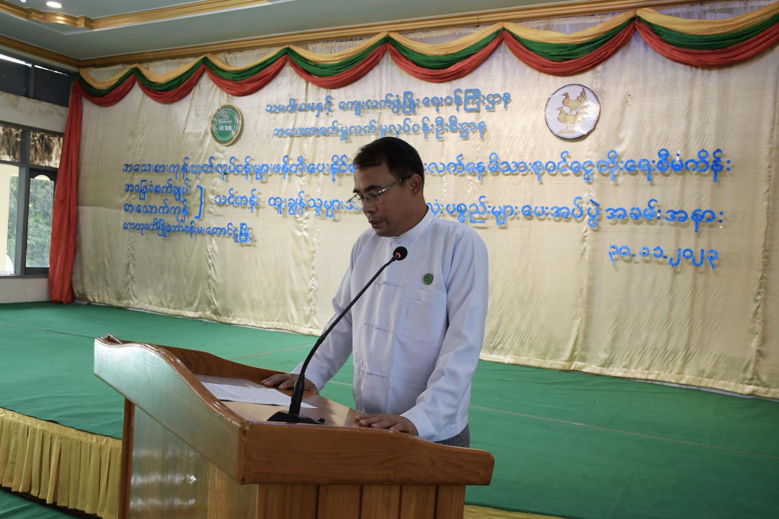 အခမ်းအနားတွင် အသေးစားစက်မှုလုပ်ငန်းဦးစီးဌာန ညွှန်ကြားရေးမှူးချုပ် ဦးသိန်းတိုးက နိုင်ငံတော်၏မူဝါဒနှင့်အညီ ကျေးလက်ဒေသဖွံ့ဖြိုးရေးနှင့် လူမှုစီးပွားဘဝမြှင့်တင်ရေး၊ မြို့ပြနှင့်ကျေးလက်ဒေသနေပြည်သူများ အလုပ်အကိုင်အခွင့်အလမ်းများ ဖြစ်ထွန်းပေါ်ပေါက်လာစေရေး၊ တစ်ဖက်တစ်လမ်းမှ မိသားစုဝင်ငွေတိုးပွားရှိလာစေရေး၊ တစ်ပိုင်တစ်နိုင်အသေးစား ကုန်ထုတ်လုပ်ငန်းများ ထူထောင်လုပ်ကိုင်ဆောင်ရွက်နိုင်ရေးနှင့် လူ့စွမ်းအားအရင်းအမြစ်များ ဖွံ့ဖြိုးတိုးတက်လာစေရေးတို့အတွက် အသက်မွေးဝမ်းကျောင်း အထောက်အကူပြုသင်တန်းများကို အသေးစားစက်မှုလက်မှုလုပ်ငန်းဦးစီးဌာနအနေဖြင့် ဖွင့်လှစ်သင်ကြားပေးလျက်ရှိကြောင်း၊ လုပ်ငန်းများထူထောင်မည့်သူများအနေဖြင့် မိမိတို့ဆောင်ရွက်မည့် လုပ်ငန်းအလိုက် လုပ်ငန်းစတင်လည်ပတ်နိုင်ရေးအတွက် အသေးစားစက်မှုလုပ်ငန်းဦးစီးဌာန၏ လမ်းညွှန်မှုများကို စနစ်တကျလိုက်နာဆောင်ရွက်ခြင်းဖြင့် အောင်မြင်သည့် အသေးစားကုန်ထုတ်လုပ်ငန်းရှင်များ ပေါ်ထွန်းလာစေရန် တိုက်တွန်းပြောကြားသည်။