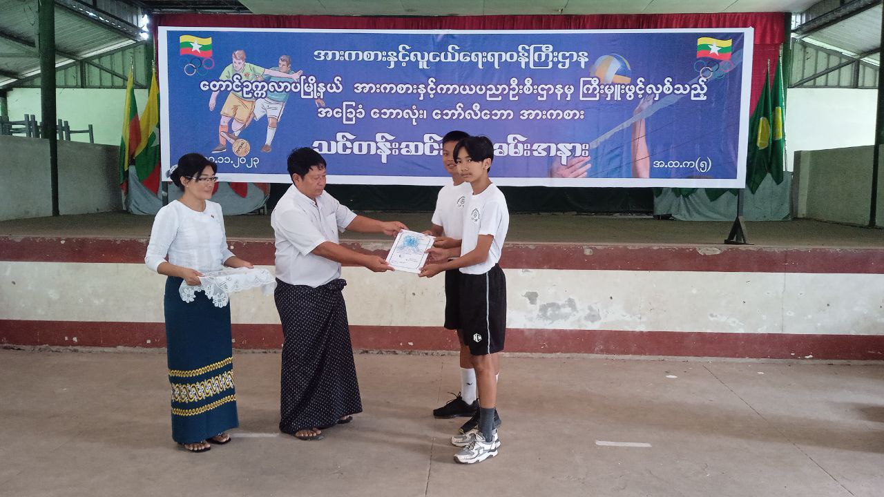 ရှေးဦးစွာအခမ်းအနားတွင် အမှတ်(၅)အခြေခံပညာအထက်တန်းကျောင်း ကျောင်းအုပ်ဆရာမကြီးဒေါ်ညိုညိုအောင်က အဖွင့်အမှာစကားပြောကြားခဲ့ပြီး တောင်ဥက္ကလာပမြို့နယ်အထွေထွေအုပ်ချုပ်ရေးဦးစီးဌာန၊ ဒုတိယမြို့နယ်အုပ်ချုပ်ရေးမှူး ဦးထွန်းထွန်းဝင်းနှင့် ရန်ကုန်တိုင်းဒေသကြီး၊ အားကစားနှင့်ကာယပညာဦးစီးဌာန လက်ထောက်ညွှန်ကြားရေးမှူးဦးမင်းဆွေဦးတို့မှ သင်တန်းသား၊ သင်တန်းသူများအား သင်တန်းဆင်းလက်မှတ်များပေးအပ်ချီးမြှင့်ခဲ့သည်။ ဆက်လက်၍ရန်ကုန်တိုင်းဒေသကြီး လူငယ်ရေးရာဦးစီးဌာန လက်ထောက်ညွှန်ကြားရေးမှူး ဦးအေးချိုတူးနှင့် အမှတ်(၅)အခြေခံပညာအထက်တန်းကျောင်းအုပ်ဆရာမကြီး ဒေါ်ညိုညိုအောင်တို့မှ နည်းပြများအား ဂုဏ်ပြုငွေချီးမြှင့်ခြင်းနှင့် အားကစားနှင့်ကာယပညာဦးစီးဌာန မြို့နယ်အားကစားမှူး ဒေါ်လေးဇာဇာလှိုင်းမြင့်မှ ကျောင်းအုပ်ဆရာမကြီးဒေါ်ညိုညိုအောင်အား အမှတ်တရလက်ဆောင်များ ပေးအပ်ချီးမြှင့်ခဲ့ကြောင်း သိရသည်။