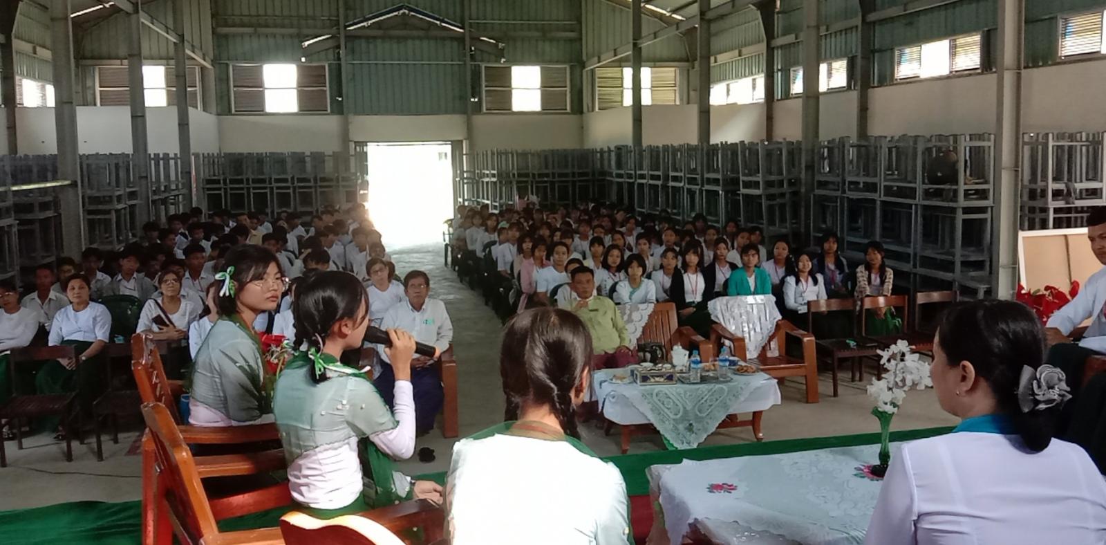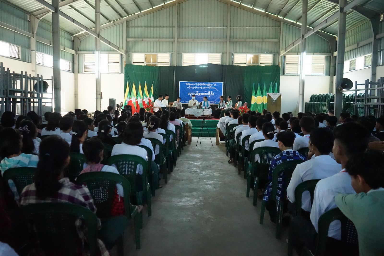 ထို့နောက် ပါဝင်ဆွေးနွေးကြသော ကျောင်းသား၊ ကျောင်းသူများကို မြို့နယ်စီမံအုပ်ချုပ်ရေး အဖွဲ့ဥက္ကဌ ဦးခိုင်မင်းကိုနှင့်မြို့နယ်ပညာရေးမှူး ဦးကျော်သိန်းထွန်းတို့မှ ဂုဏ်ပြုငွေနှင့် လက်ဆောင်ပစ္စည်းများ ချီးမြှင့်ပြီး ဆွေးနွေးပွဲသို့ မြို့နယ်စီမံအုပ်ချုပ်ရေးအဖွဲ့ဝင်များ၊ ဌာနဆိုင်ရာအကြီးအကဲများ၊ အမှတ်(၁) အခြေခံပညာအထက်တန်းကျောင်းမှ ဆရာမများနှင့် ကျောင်းသား၊ကျောင်းသူများ စုစုပေါင်း (၁၅၀) ကျော် တက်ရောက်လျက်ရှိပြီး ပြန်ကြားရေးနှင့်ပြည်သူ့ဆက်ဆံရေးဦးစီးဌာနမှ ခင်းကျင်းပြသထားသော နံရံကပ်စာစောင်ပြသခြင်း၊ သုတ၊ ရသစာအုပ်များ ဖတ်ရှုခြင်းနှင့် စကားပုံဆက်ပြိုင်ပွဲများ ကစားခြင်းတို့တွင် ပါ၀င်ကြသော ကျောင်းသား၊ကျောင်းသူများကို စာအုပ်နှင့်စာရေးကိရိယာပစ္စည်းများ ချီးမြှင့်လျက်ရှိသည်။