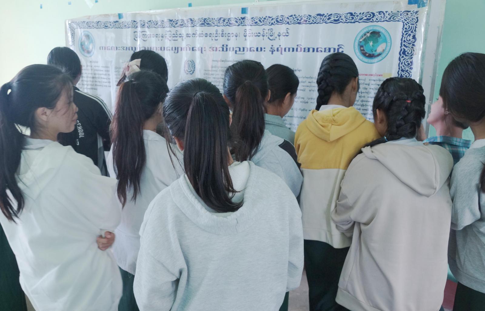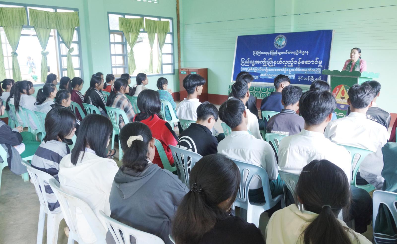 ရှေးဦးစွာ အခြေခံပညာအထက်တန်းကျောင်း(မိုင်းယန်း) ကျောင်းအုပ်ဆရာမကြီး ဒေါ်နန်းရွဲန်မိုင်က ကျောင်းသား/ ကျောင်းသူများအား နေ့ထူးနေ့မြတ်များကို မမေ့အပ်ပဲ အစဉ်အမြဲ တန်ဖိုးထားသင့်ကြောင်းပြောကြားပြီး ၂၀၂၃ခုနှစ်၊ ဒီဇင်ဘာလ ၇ ရက်နေ့တွင် ကျရောက်မည့် (၁၀၃)နှစ်မြောက် အမျိုးသားအောင်ပွဲနေ့ အထိမ်းအမှတ်အကြိုအဖြစ် အမျိုးသားအောင်ပွဲနေ့ ဖြစ်ပေါ်လာပုံ သမိုင်းကြောင်းကို အကျယ်တဝင့်ရှင်းလင်းကာ အသိပညာပေး ဟောပြောသည်။ ထို့နောက် မြို့နယ်ပြန်ကြားရေးနှင့်ပြည်သူ့ဆက်ဆံရေးဦးစီးဌာန ဝန်ထမ်းများမှ ကျောင်းသား/ ကျောင်းသူများအား ကလေးအလုပ်သမားပပျောက်ရေးဆိုင်ရာ အသိပညာပေးနံရံနှင့် အသိပညာဗဟုသုတများ ရရှိစေရန်အတွက် သုတ၊ ရသ စာအုပ်စာစောင်များကို ခင်းကျင်းပြသငှားရမ်းပေးခဲ့ကြောင်း သိရသည်။