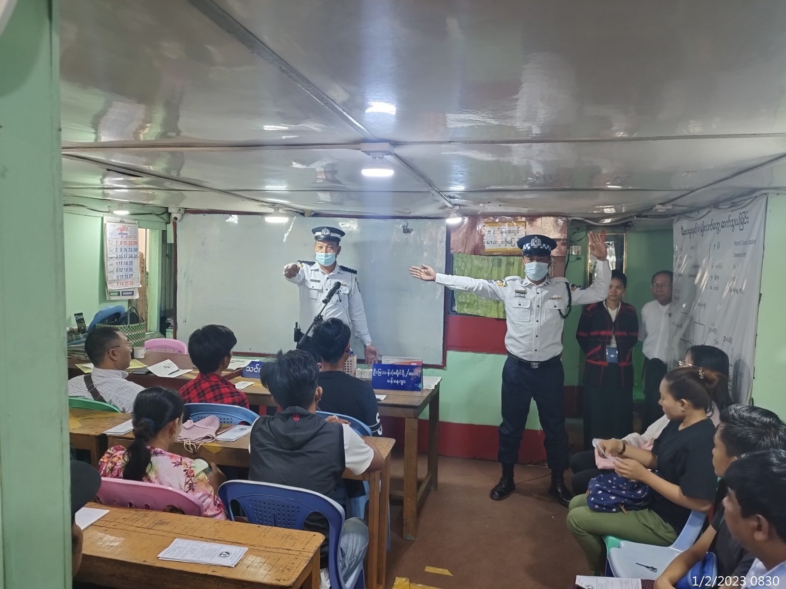 "ဆရာကျော်" ယာဉ်မောင်းသင်တန်းကျောင်းတွင် သင်တန်းတက်ရောက်နေသည့် သင်တန်းသား/သူများသို့ မင်္ဂလာဒုံခရိုင်ယာဉ်လမ်းအန္တရာယ်ကင်းရှင်းရေးအဖွဲ့ ဒုရဲမှူးဇော်ဇော်စိုးနှင့် တပ်ဖွဲ့ဝင်များက ယာဉ်အန္တရာယ်ကင်းရှင်းရေး၊ လမ်းအန္တရာယ်ကင်းရှင်းရေးနှင့် ယာဉ်မောင်းများသိရှိထားရမည့် ယာဉ်ဆိုင်ရာအခြေခံအချက်အလက်များအချက်ပြမီးဆိုင်ရာ သိကောင်းစရာများ၊ လမ်းပြအမှတ်အသားဆိုင်ရာ သိမှတ်စရာဂရုပြုဖွယ်ရာများ၊ ယာဥ်တိုက်မှုနှင့်ပတ်သတ်၍ဆောင်ရန်/ ရှောင်ရန်တို့ကိုဟောပြာခဲ့ပြီး လက်ကမ်းစာစောင်များ ဖြန့်ဝေခဲ့ကြကာ သင်တန်းသားအင်အား(၅၀)ဦး တက်ရောက်ခဲ့ကြောင်း သိရသည်။