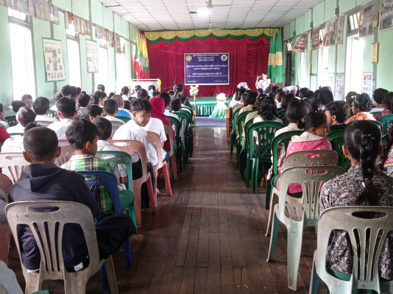 အဆိုပါအခမ်းအနားတွင် မြို့နယ်ပြည်သူ့ကျန်းမာရေးဦးစီးဌာနမှူး ဒေါက်တာစည်သူစန်းက ကျန်းမာရေးဆိုင်ရာအသိပညာပေးဟောပြောပြီး ကျောင်းကျန်းမာရေးဆရာမ ဒေါ်နန်းနန်းထွေးက သွားကျန်းမာရေးနှင့် တစ်ကိုယ်သန့်ရှင်းရေးဆိုင်ရာ ကျန်းမာရေးအသိပညာများကို လက်တွေ့သရုပ်ပြသ၍ ပညာပေးဆောင်ရွက်ခဲ့သည်။