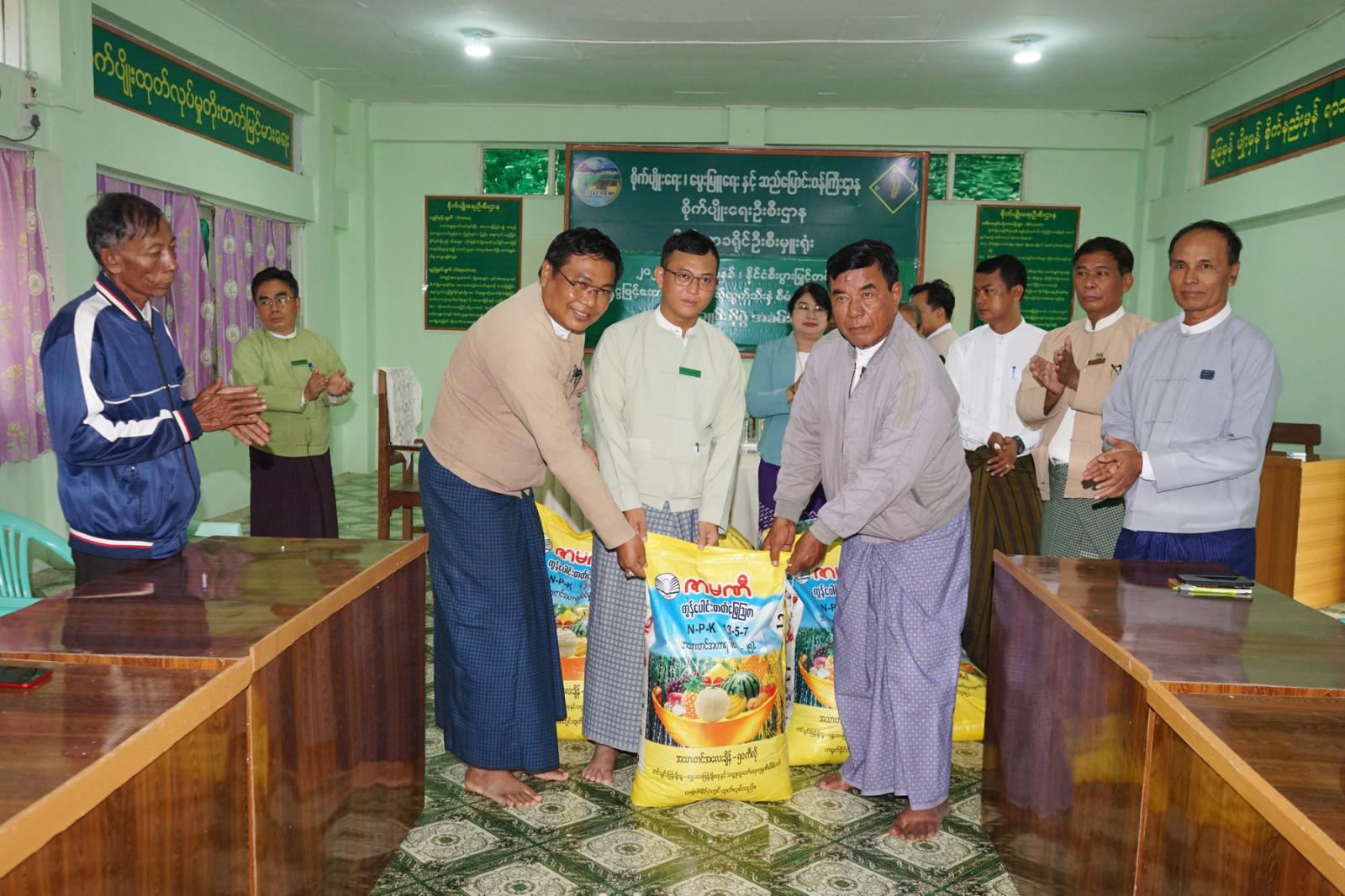 အခမ်းအနားတွင် ခရိုင်စီမံအုပ်ချုပ်ရေးအဖွဲ့ ဥက္ကဋ္ဌ ခရိုင်အုပ်ချုပ်ရေးမှူး ဦးဇော်ဇော်ဦးက အဖွင့်အမှာစကားပြောကြားခဲ့ပြီး တိုင်းဒေသကြီးစိုက်ပျိုးရေးဦးစီးဌာနမှ ဒုတိယတိုင်းဒေသကြီးဦးစီးမှူး ဦးဇော်ဝင်းထွန်းက နိုင်ငံစီးပွားမြှင့်တင်ရေးရန်ပုံငွေဖြင့် ဆောင်ရွက်မည့် ဆီထွက်သီးနှံ စီမံကိန်းအတွက် ချေးငွေသဘောတူစာချုပ် ချုပ်ဆိုခြင်းနှင့် ပတ်သက်၍ လိုက်နာဆောင်ရွက်ရမည့် လုပ်ငန်းများအကြောင်းကို ရှင်းလင်းပြောကြားခဲ့သည်။ ၎င်းနောက် နိုင်ငံစီးပွားမြှင့်တင်ရေးရန်ပုံငွေဖြင့် ဆောင်ရွက်မည့် ဆီထွက်သီးနှံ စီမံကိန်းအတွက် ချေးငွေသဘောတူစာချုပ်ကို ချုပ်ဆိုခဲ့ပြီး ခရိုင်စီမံ အုပ်ချုပ်ရေးအဖွဲ့ ဥက္ကဋ္ဌ ခရိုင်အုပ်ချုပ်ရေးမှူး ဦးဇော်ဇော်ဦး၊ ဒုတိယတိုင်းဒေသကြီးဦးစီးမှူး ဦးဇော်ဝင်းထွန်း၊ မိတ္ထီလာခရိုင်စိုက်ပျိုးရေး ဦးစီးဌာနမှ ခရိုင်ဦးစီးမှူး ဒေါ်စန္ဒာလင်း၊ မြို့နယ် စီမံအုပ်ချုပ်ရေးအဖွဲ့ ဥက္ကဋ္ဌ မြို့နယ်အုပ်ချုပ်ရေးမှူး ဦးဇော်အောင်လေး၊ မြို့နယ်စိုက်ပျိုးရေးဦးစီးမှူး ဦးသက်နိုင်အေးနှင့် တာဝန်ရှိသူများက တောင်သူများအား သွင်းအားစုများပေးအပ်ခဲ့သည်။