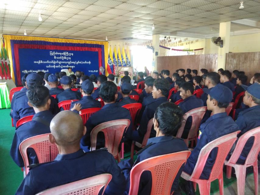 ရန်ကုန်တိုင်းဒေသကြီး၊ ဒဂုံမြို့သစ်ခရိုင်၊ ဒဂုံမြို့သစ်(အရှေ့ပိုင်း) မြို့နယ်၌ မြို့နယ်မီးသတ်ဦးစီးဌာနမှ ကျင်းပပြုလုပ်သော အရန်မီးသတ်တပ်ဖွဲ့ဝင်များ လေ့ကျင့်(မွမ်းမံ)သင်တန်း၊ သင်တန်းဆင်းပွဲအခမ်းအနားကို မြို့နယ်မီးသတ်ဦးစီးဌာန အစည်းအဝေးခန်းမတွင် ယနေ့နံနက်ပိုင်း ၉ နာရီအချိန်က ကျင်းပပြုလုပ်သည်။
