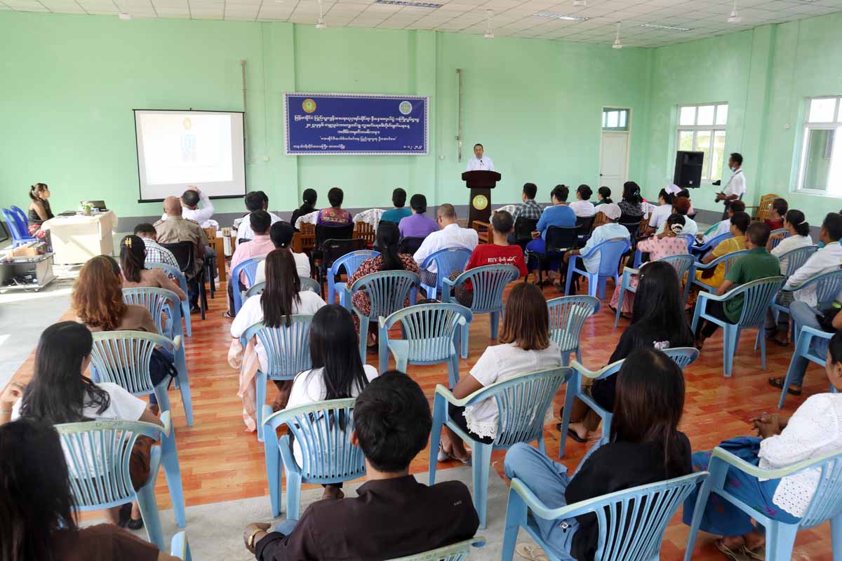ထို့နောက်တိုင်းဒေသကြီး ခုခံအားကျဆင်းမှုကူးစက်ရောဂါ တိုက်ဖျက်ရေးအဖွဲ့မှ လက်ထောက်ညွှန်ကြားရေးမှူး ဒေါက်တာကျော်တင့်ထွန်းက တိုင်းဒေသကြီးအတွင်းဆောင်ရွက်လျက်ရှိသော HIV/AIDS ရောဂါတိုက်ဖျက်ရေး လုပ်ငန်းများအားရှင်းလင်းတင်ပြသည်။