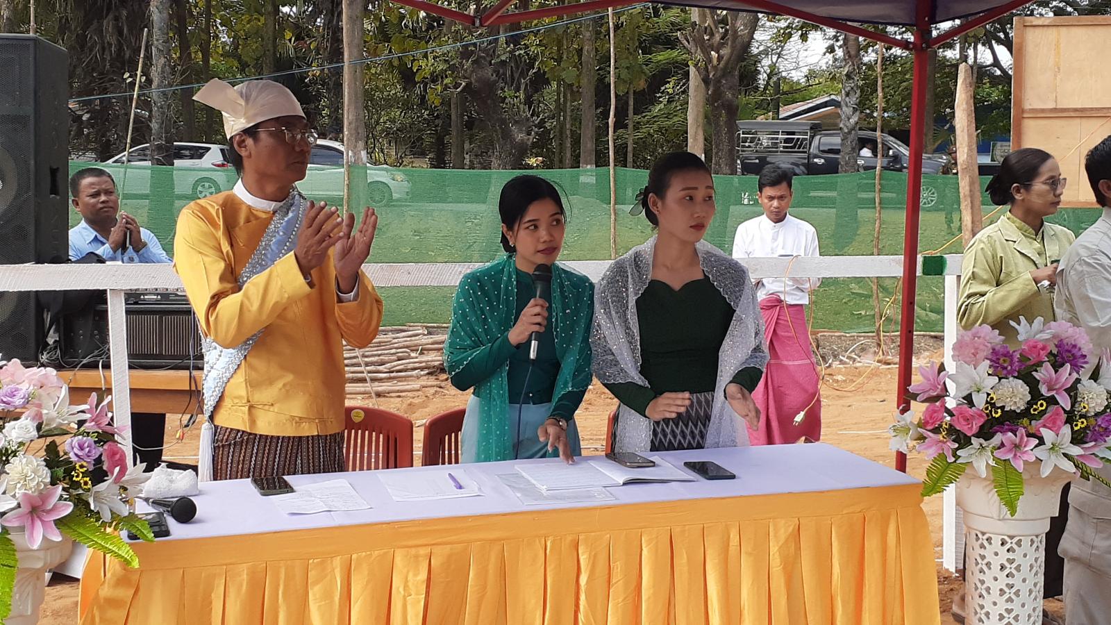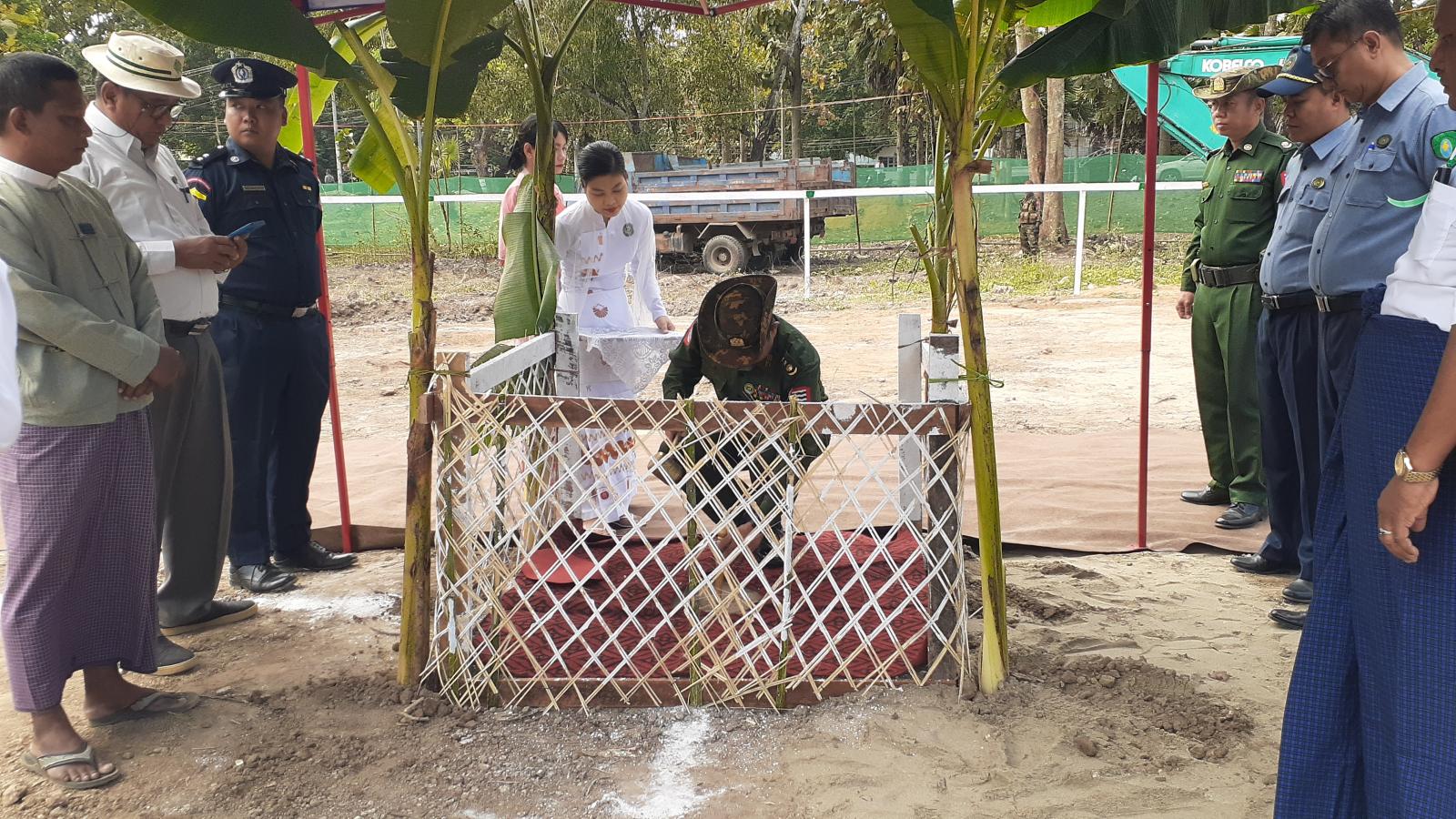 ဦးစွာ ဧရာဝတီတိုင်းဒေသကြီးအစိုးရအဖွဲ့ဝန်ကြီးချုပ် ဦးတင်မောင်ဝင်းနှင့် အစိုးရအဖွဲ့ ဝန်ကြီးများသည် မင်္ဂလာအချိန်တွင် ပန္နက်တိုင်များအား စိုက်ထူပေးပြီး အောင်သပြေ အမွှေးနံ့သာများဖြင့် ပက်ဖြန်းပေးခဲ့ကြသည်။