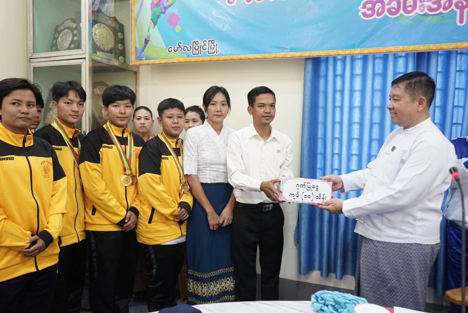 ဆက်လက်၍ ၂၀၂၃ ခုနှစ် ပြည်နယ်နှင့်တိုင်းဒေသကြီး ပိုက်ကျော်ခြင်းပြိုင်ပွဲ တံခွန်စိုက်ဒိုင်းဆုရ မွန်ပြည်နယ် ပိုက်ကျော်ခြင်းအသင်းအား ဂုဏ်ပြုပွဲအခမ်းအနားကို ယနေ့နံနက်ပိုင်းက ရာမညအားကစားကွင်း အစည်းအဝေးခန်းမ၌ကျင်းပပြုလုပ်ရာ ရှေးဦးစွာ အောင်ပွဲရ မွန်ပြည်နယ်ပိုက်ကျော်ခြင်းအသင်း အဖွဲ့ခေါင်းဆောင်၊ အုပ်ချုပ်သူ၊ နည်းပြနှင့် အားကစားသမားများက တစ်ဦးချင်းမိတ်ဆက်ကြပြီး ပြည်နယ်ဝန်ကြီးချုပ် ဦးအောင်ကြည်သိန်းက မွန်ပြည်နယ်ရဲ့ အားကစားအဆင့်အတန်းတိုးတက်မြင့်မားရေးအတွက် စွမ်းစွမ်းတမံ ကြိုးစားအားထုတ် ယှဉ်ပြိုင်ခဲ့တာကြောင့် တံခွန်စိုက်ဒိုင်းဆုရရှိခဲ့ကြသည့် ပြည်နယ်ဂုဏ်ဆောင် ပိုက်ကျော်ခြင်းအသင်းမှ အားကစားသမားများကို မွန်ပြည်နယ်အစိုးရအဖွဲ့မှ ပြည်သူလူထုကိုယ်စား ဂုဏ်ပြုချီးမြှင့်ပေးရခြင်းဖြစ်ကြောင်း၊ ၂၀၂၃ ခုနှစ်၊ ပြည်နယ်နှင့်တိုင်းဒေသကြီးပိုက်ကျော်ခြင်း အမျိုးသမီးတံခွန်စိုက်ဒိုင်းဆုနှင့် အမျိုးသား (၂) ယောက်တွဲ ကြေးတံဆိပ်ဆုရရှိအောင် စွမ်းဆောင်ခဲ့ကြသည့်အတွက် အောင်မြင်မှုများရရှိခဲ့ခြင်းဟာ မွန်ပြည်နယ်အစိုးရအဖွဲ့၏ အားကစားနည်းအလိုက် ဆပ်ကော်မတီဝင်များ၏ ပူးပေါင်းဆောင်ရွက်မှု၊ စေတနာရှင်၊ အလှူရှင်၊ လုပ်ငန်းရှင်များ၏ ထောက်ပံ့ကူညီမှုများကြောင့်ဖြစ်သလို အားကစားသမားများ၏ ကြိုးစားအားထုတ်မှုတို့ကြောင့်ဖြစ်ကြောင်း၊ အားကစားအဆင့်အတန်းဟာ အနာဂတ်မှာ ယခုထက် ပိုမိုတိုးတက်ဖွံ့ဖြိုးလာနိုင်အောင် ကျန်းမာကြံ့ခိုင်တဲ့ လူငယ်တွေဖြစ်လာအောင် ပြုစုပျိုးထောင် မွေးထုတ်ပေးရမှာဖြစ်ပြီး ပြည်နယ်ဂုဏ်သာမက နိုင်ငံ့ဂုဏ်ကို ဖော်ဆောင်ပေးနိုင်တဲ့ သူတွေဖြစ်အောင် ကြိုးစားကြရန်တိုက်တွန်းမှာကြားခဲ့သည်။