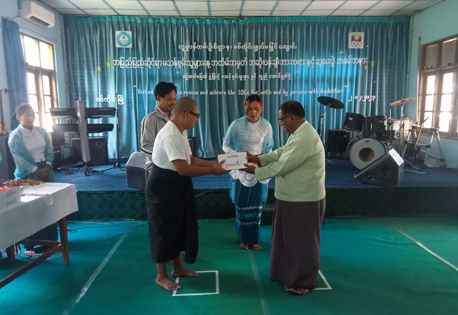 အခမ်းအနားတွင် စစ်ကိုင်းတိုင်းဒေသကြီး လူမှုဝန်ထမ်းဦးစီးဌာန၊ တိုင်းဒေသကြီးဦးစီးမှူးက “စဉ်ဆက်မပြတ်ဖွံ့ဖြိုးဖို့ မသန်စွမ်းသူများနှင့် ကူညီဆောင်ရွက်စို့” ဆိုသည့်အတိုင်း မသန်းစွမ်းသူများ၏ စိတ်ပိုင်းဆိုင်ရာ၊ ကိုယ်ပိုင်းဆိုင်ရာ ကြံ့ခိုင်မှုရရှိစေရန် စဉ်ဆက်မပြတ် လေ့ကျင့်ပြုစုပျိုးထောင်ပေးနေလျှက်ရှိကြောင်း၊ ယခုဆိုရင်လည်း စစ်ကိုင်းမျက်မမြင်ကျောင်းမှ ကျောင်းသား/ ကျောင်းသူလေးများအား အဆိုပြိုင်ပွဲ၊ အပြေးပြိုင်ပွဲ၊ သံလုံးပစ်ပြိုင်ပွဲ၊ အိပ်စွတ်ပြေးပြိုင်ပွဲ၊ ပန်းချီ၊ စစ်တုရင်ပြိုင်ပွဲများ ကျင်းပပေးပြီး ဆုများချီးမြှင့်ပေးသွားမှာဖြစ်ကြောင်း ဆွေးနွေးပြောကြားပြီး ပြိုင်ပွဲအလိုက် ဆုရရှိခဲ့ကြသည့် ကျောင်းသား/ ကျောင်းသူလေးများအား တိုင်းဒေသကြီးဦးစီးမှူး၊ ခရိုင်စီမံအုပ်ချုပ်ရေး အဖွဲ့ဥက္ကဋ္ဌနှင့် တာဝန်ရှိသူမျာက ဆုများအသီးသီးပေးအပ်ခဲ့ကြသည်။