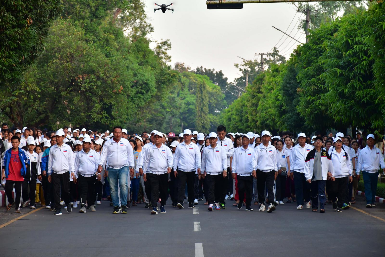 ဦးစွာ ပြည်နယ်ဝန်ကြီးချုပ်နှင့် စုပေါင်းလူထုလမ်းလျှောက်ပွဲပါဝင်ဆင်နွှဲသူများသည် စုရပ်ဖြစ်သော ဝန်ကြီးများအိမ်ယာရှေ့မှ သီရိလမ်း၊ ယဉ်ကျေးမှုပြတိုက်လမ်း၊ ဦးပေါက်လမ်း၊ ကန်သာယာပတ်လမ်း၊ ကျော်ဇေယျလမ်း၊ ဆေးရုံလမ်းမှတစ်ဆင့် သီရိလမ်းအတိုင်း ကန်သာယာအားပတ်၍ သီရိကွင်းအတွင်း ပြန်လည်ဝင်ရောက် စုပေါင်းလမ်းလျှောက်ခဲ့ကြပြီး သီရိကွင်းအတွင်း၌ တစ်ဦးနှင့်တစ်ဦး ရှေ့၊ နောက်၊ ဘယ်၊ ညာ (၆)ပေအကွာ အနေအထားဖြင့် အကြောလျော့လေ့ကျင့်ခန်းများ ဆောင်ရွက်၍ စုပေါင်းကိုယ်လက်ကြံခိုင်ရေးလေ့ကျင့်ခန်း အစီအစဉ် အတွဲအမှတ်(၁)နှင့် အမှတ်(၂)တို့ကို စုပေါင်းဆောင်ရွက်ခဲ့ကြသည်။