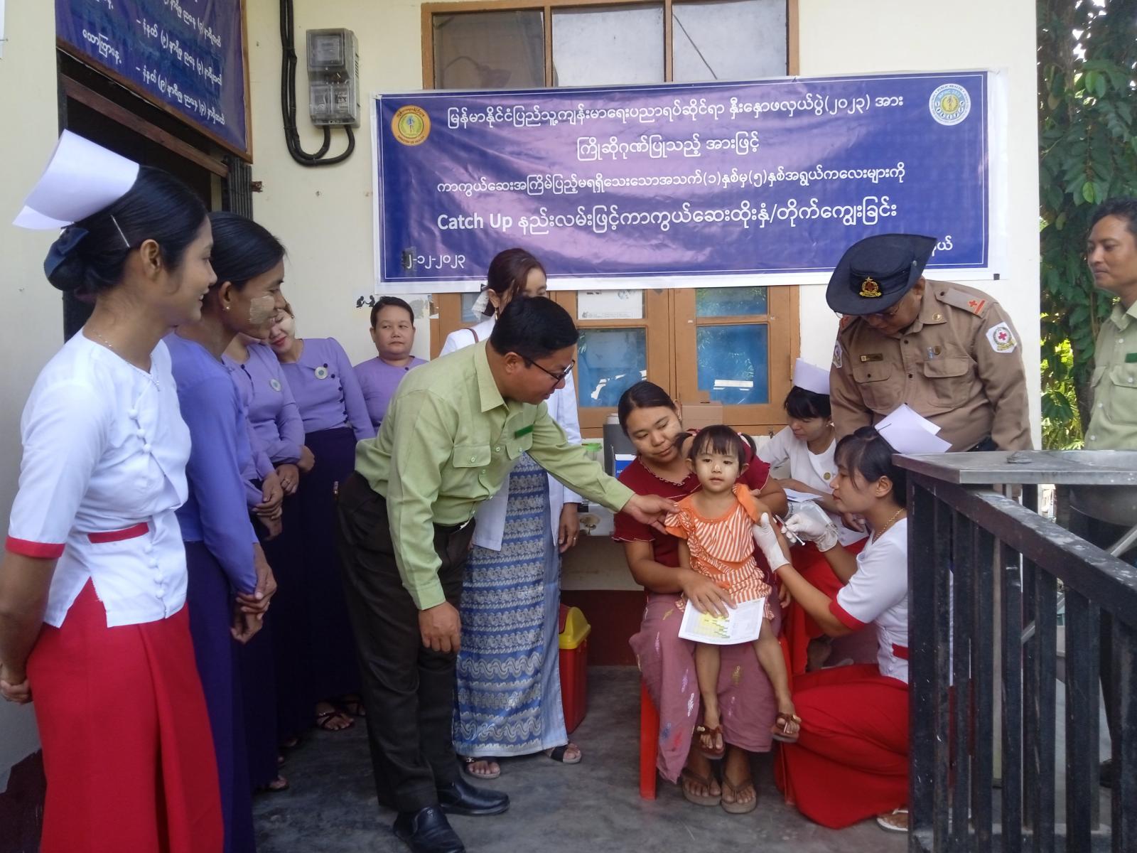 ဧရာဝတီတိုင်းဒေသကြီး၊ မြန်အောင်ခရိုင်၊ အင်္ဂပူမြို့နယ်၊ မဲဇလီကုန်းမြို့ ကျေးလက်ကျန်းမာရေးဌာနတွင်ယနေ့နံနက်ပိုင်းက မြန်မာနိုင်ငံပြည်သူ့ကျန်းမာရေး ပညာရပ်ဆိုင်ရာ နှီးနှောဖလှယ်ပွဲ (၂၀၂၃)အား ကြိုဆိုဂုဏ်ပြုသည့်အားဖြင့် ကာကွယ်ဆေး အကြိမ်ပြည့် မရရှိသေးသော အသက် (၂) နှစ်မှ (၅) နှစ်အရွယ် ကလေးများအား Catch Up နည်းလမ်းဖြင့် ကာကွယ်ဆေး တိုက်ကျွေး/ ထိုးနှံခြင်း အခမ်းအနား ပြုလုပ်ခဲ့သည်။