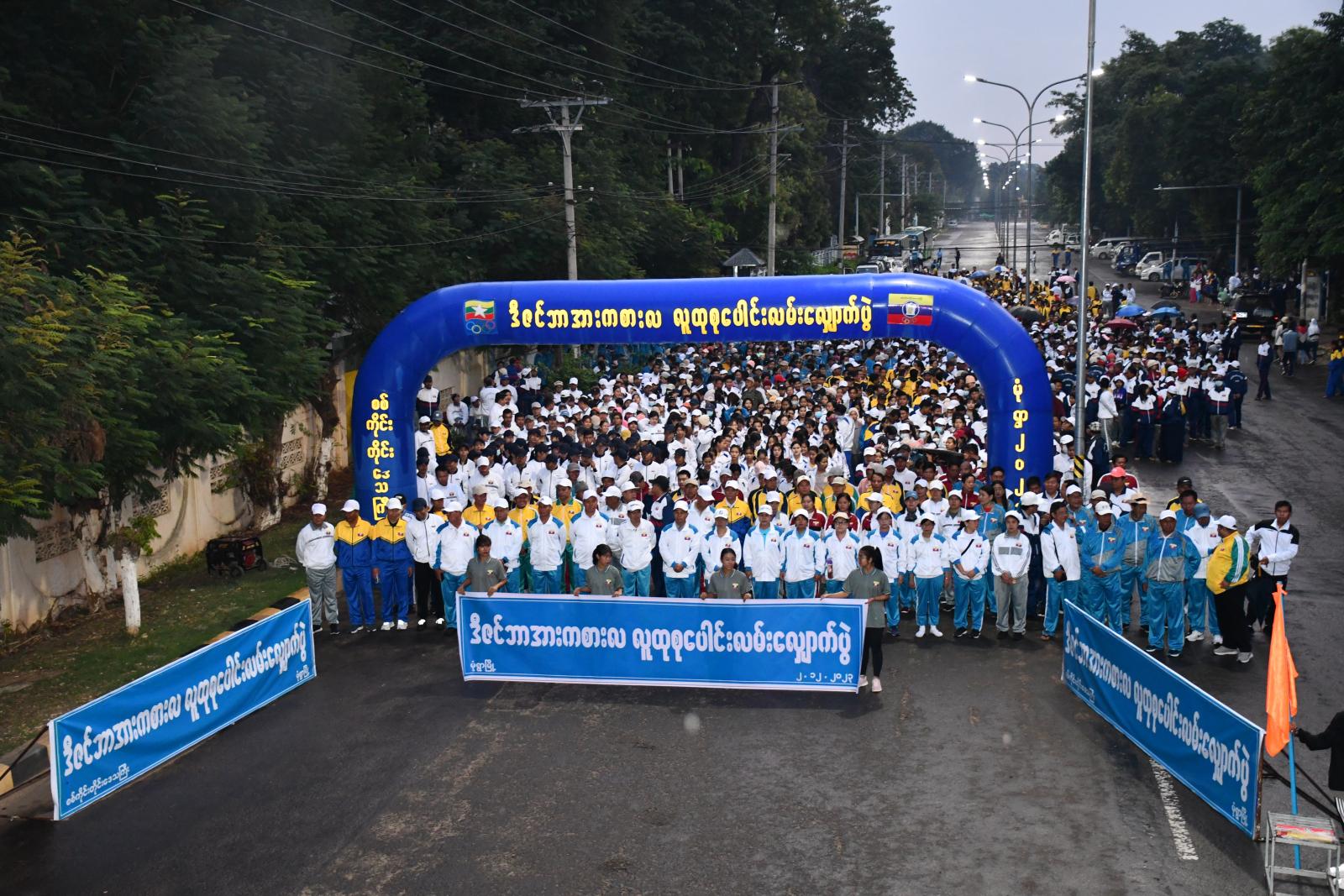 ရှေးဦးစွာ စုပေါင်းလမ်းလျှောက်ပွဲသို့ တက်ရောက်လာသူများမှ မုံရွာမြို့၊ ပြည်သူအားကစားကွင်းမှ စတင်ကာ ဗိုလ်ချုပ်လမ်းတစ်လျှောက် ကန်သာယာ ရာပြည့်ကပ်ကျော်စေတီတော် မုဒ်ဦးအထိ၊ ထိုမှပြည်သူ့အားကစားကွင်းသို့ သက်မှတ်ထားသောလမ်းကြောင်းအတိုင်း တိုင်းဒေသကြီး/ခရိုင်/မြို့နယ်အဆင့် ဌာနဆိုင်ရာ ဝန်ထမ်းများ၊ ကျောင်းသား/ကျောင်းသူများနှင့် ရပ်ကွက်နေ ပြည်သူ အင်အား ၄၀၀၀ ကျော်ဖြင့် တစ်ပျော်တစ်ပါး စုပေါင်းလမ်းလျှောက်ခဲ့ကြသည်။