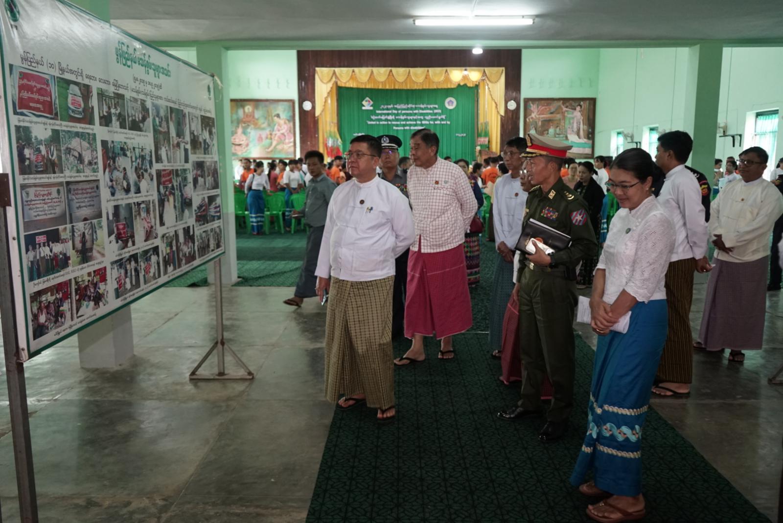 ဆက်လက်၍ ပြည်နယ်ဝန်ကြီးချုပ်နှင့်တာဝန်ရှိသူများက တက်ရောက်လာသူများအား ရင်းရင်းနှီးနှီးလိုက်လံနှုတ်ဆက်ကာ ခန်းမအတွင်းပြသထားသည့် အပြည်ပြည်ဆိုင်ရာမသန်စွမ်းသူများနေ့အထိမ်းအမှတ်ပြခန်းများအား လှည့်လည်ကြည့်ရှုအားပေးခဲ့ကြောင်း သိရှိရသည်။