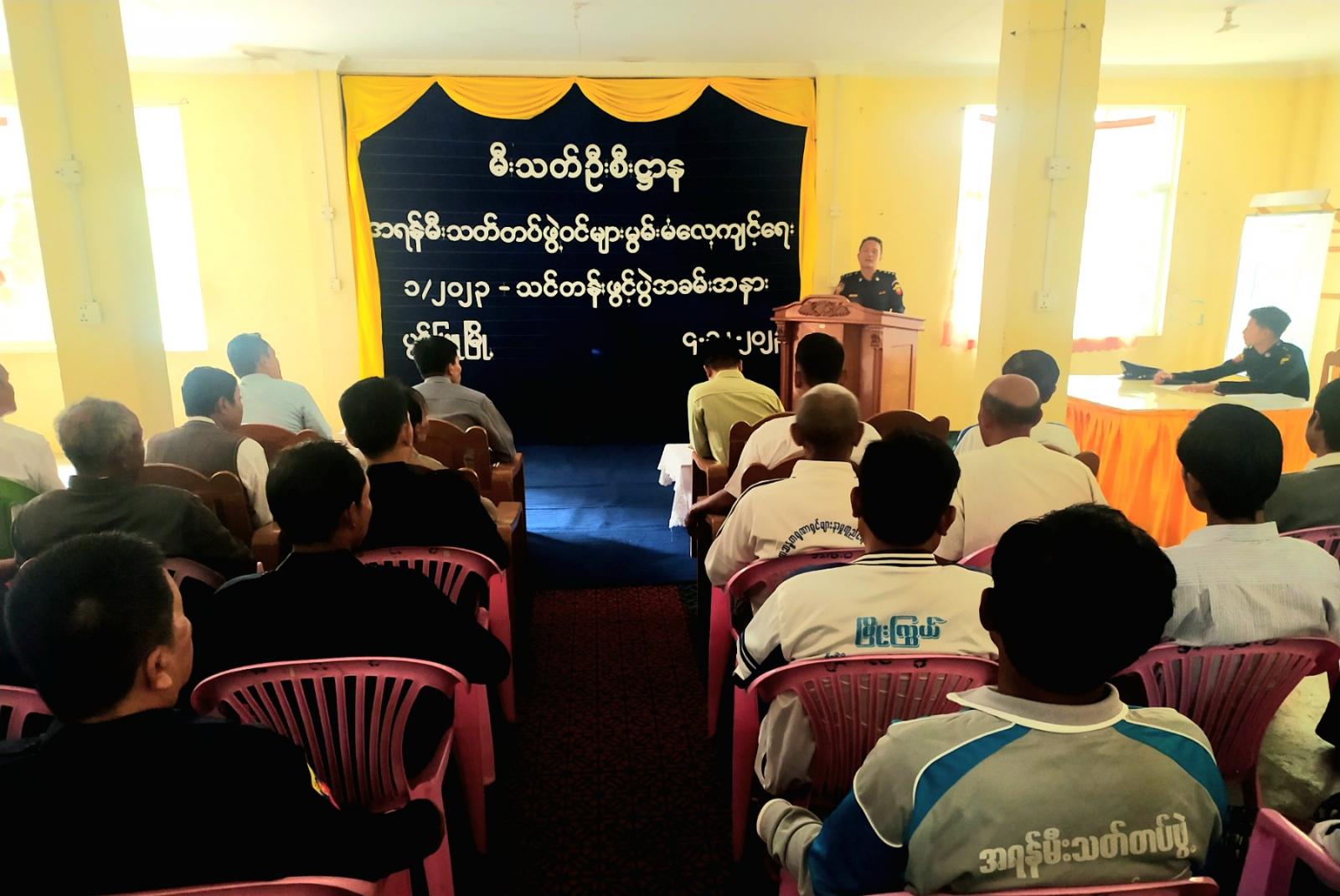 ထို့နောက် ဒုတိယမြို့နယ်အုပ်ချုပ်ရေးမှူးနှင့်တာဝန်ရှိသူများက အရန်မီးသတ်တပ်ဖွဲ့ဝင် သင်တန်းသားများအတွက် တူညီဝတ်စုံများ ပေးအပ်ရာ သင်တန်းသားကိုယ်စားလှယ်တစ်ဦးက လက်ခံရယူခဲ့ပြီး ကျေးဇူးတင်စကား ပြန်လည်ပြောကြားသည်။ အဆိုပါ အရန်မီးသတ်တပ်ဖွဲ့ဝင်များ လေ့ကျင့်ရေး (မွမ်းမံ)သင်တန်းကို မြို့ပေါ်ရပ်ကွက်(၄)ရပ်ကွက်နှင့် ကျေးရွာအုပ်စု(၂)အုပ်စုမှ အရန်မီးသတ်တပ်ဖွဲ့ဝင် သင်တန်းသားဦးရေ ၅၀ ဦး တက်ရောက်သင်ကြားသွားမည်ဖြစ်ကာ ဒီဇင်ဘာ ၄ ရက်နေ့မှ ၂၉ ရက်နေ့အထိ စာတွေ့လက်တွေ စနစ်တကျ ဖွင့်လှစ်သင်ကြားပေးသွားမည်ဖြစ်ကြောင်း သိရသည်။