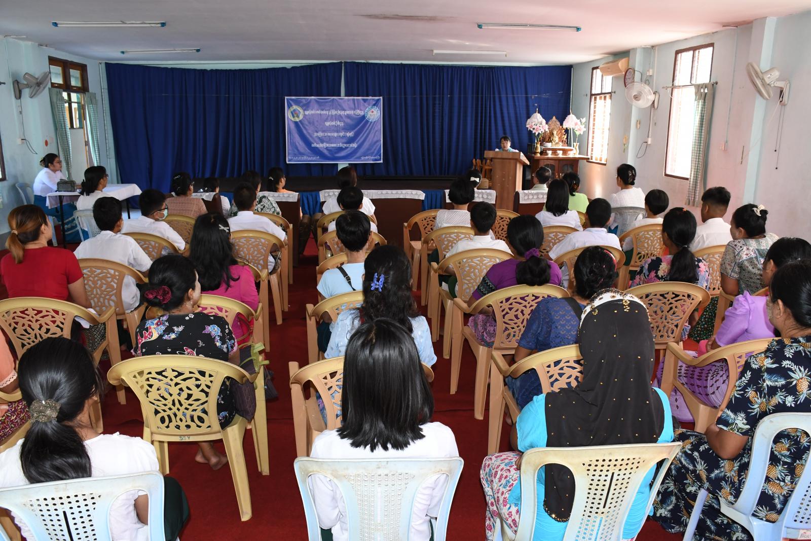 အခမ်းအနားတွင် ရန်ကုန်တိုင်းဒေသကြီး လူမှုဝန်ထမ်းဦးစီးဌာနရုံးမှ ညွှန်ကြားရေးမှူး ဒေါ်သိန်းသိန်းမြင့်က အဖွင့်အမှာစကားပြောကြားရာတွင် “လူမှုဝန်ထမ်းဦးစီးဌာနအနေဖြင့် လုပ်ငန်းကြီး(၇)ရပ်ကို ဆောင်ရွက်လျက်ရှိပါကြောင်း၊ အဆိုပါ(၇)ရပ်ထဲမှာ မသန်းစွမ်းသူများနှင့် သက်ကြီးရွယ်အိုများ ဘဝမြှင့်တင်ရေးနှင့် စောင့်ရှောက်ရေးလုပ်ငန်းဟာ တခုအပါအဝင်ဖြစ်ပါကြောင်း၊ ယခုသင်တန်းမှာ မသန်းစွမ်းသူတွေထဲက အကြားအာရုံမသန်စွမ်းသူတွေရဲ့ သဘောသဘာဝ၊ ယဉ်ကျေးမှုနဲ့ လက်သင်္ကေတပြဘာသာစကားအကြောင်းကို သိရှိနိုင်ရန်အတွက်ရည်ရွယ်ပြီး သင်ကြားပေးသွားမှာဖြစ်ပါကြောင်း၊ နားမကြားသူတွေဟာ အကြားအာရုံမသန်စွမ်းသဖြင့် လူ့အသိုင်းအဝိုင်းအတွင်း ဝင်ဆန့်နိုင်မှုအခက်အခဲများကြောင့် အရာရာမှာနောက်ကျကျန်နေတာတွေ ဖြစ်ပေါ်လျက်ရှိပါကြောင်း၊ ဒါကြောင့် နားမကြားသူတွေရဲ့ လူနေမှုဘဝမှာအတားအဆီးများ လျော့ပါးစေဖို့အတွက် လက်သင်္ကေတပြဘာသာစကားဖြင့် ကူညီပံ့ပိုးသူများသင်တန်းကို ဖွင့်လှစ်သင်ကြားပေးလျက်ရှိပါကြောင်း၊ အပတ်စဉ်(၁)မှ (၄)အထိသင်တန်းကို ရန်ကုန်မှာ ဖွင့်လှစ်ခဲ့ပြီးဖြစ်သလို အပတ်စဉ်(၅)ဖြစ်သည့် (၁၁)လသင်တန်းကိုလည်း မန္တလေးမှာ ယခုဖွင့်လှစ်နေပြီးဖြစ်ပါကြောင်း၊ နားမကြားသူတွေ အခက်အခဲအဖြစ်ဆုံးနေရာတွေဖြစ်တဲ့ ဆေးရုံ၊ ဆေးခန်း၊ တရားရုံး၊ အလုပ်ရုံဆွေးနွေးပွဲနှင့် သင်တန်းတွေမှာ လက်သင်္ကေတဘာသာပြန် ဝန်ဆောင်မှုပေးလျက်ရှိပါကြောင်း၊ အခုအသိပညာပေးသင်တန်းဟာရက်တိုပေမယ့် နားမကြားသူတွေရဲ့ သဘောသဘာဝ၊ ယဉ်ကျေးမှုနဲ့ လက်သင်္ကေတအခြေခံများကို ရရှိသွားမှာ ဖြစ်ပါတယ်”ဟု ပြောကြားခဲ့သည်။ ထို့နောက် တက်ရောက်လာကြသူများနှင့်အတူ အမှတ်တရစုပေါင်းမှတ်တမ်းတင် ဓာတ်ပုံရိုက်ခဲ့ကြသည်။