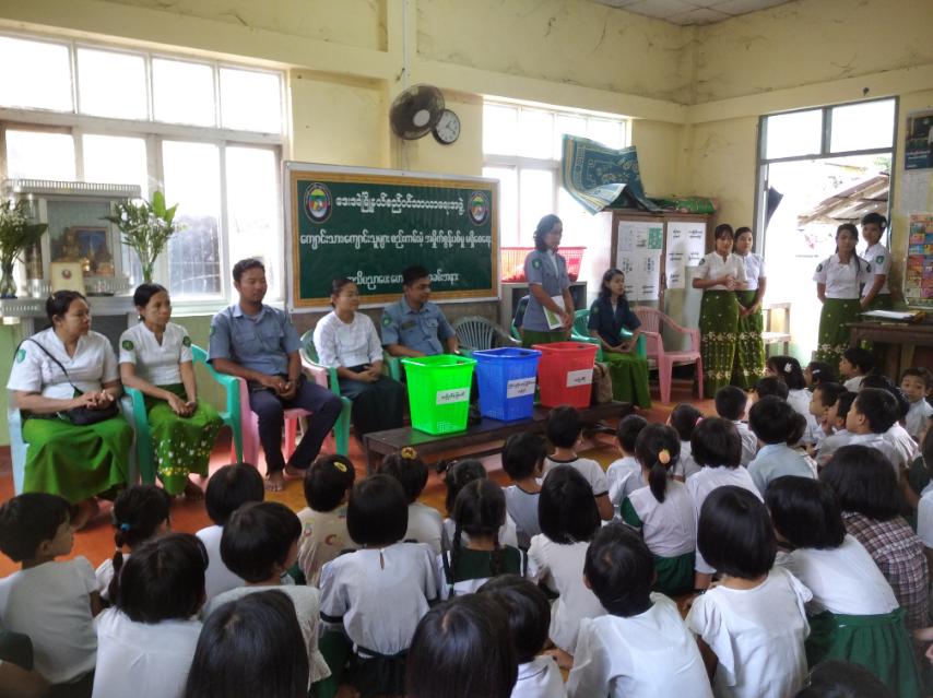 အခမ်းအနားတွင် မြို့နယ်စည်ပင်သာယာရေးအဖွဲ့ အမှုဆောင်အရာရှိ ဦးဝဏ္ဏထွန်းက စည်းကမ်းမဲ့အမှိုက်စွန့်ပစ်မှုမရှိရေးနှင့် စည်းကမ်းစနစ်တကျ အမှိုက်စွန့်ပစ်ခြင်းဖြင့် ရရှိလာနိုင်မည့် အကျိုးကျေးဇူးများကို ဆွေးနွေးဟောပြောခြင်းနှင့် ဦးစီးအရာရှိ ဒေါ်ဇာနီဝင်းက အများပြည်သူ ပူးပေါင်းပါဝင်သော အမှိုက်သိမ်းစနစ် ဖြစ်ပေါ်လာစေရေး၊ အမှိုက်နှင့် အညစ်အကြေး အမျိုးအစားများကို ဆွေးနွေးဟောပြောခဲ့သည်။ ဆက်လက်၍ မြို့နယ်စည်ပင်သာယာရေးအဖွဲ့က တာဝန်ရှိသူများက အမှိုက်ကင်းစင်ရေး အသိပညာပေးလက်ကမ်းစာစောင်များ ဖြန့်ဝေပေးခြင်း၊ ကျောင်းသား၊ ကျောင်းသူများက ဥာဏ်စမ်းပဟေဠိ ဖြေဆိုခြင်းနှင့် ဆုရရှိသူများကို မြို့နယ်စည်ပင်သာယာရေးအဖွဲ့ရုံးမှ တာဝန်ရှိသူများက ဆုများအသီးသီးပေးအပ်ခဲ့ကြောင်း သိရသည်။