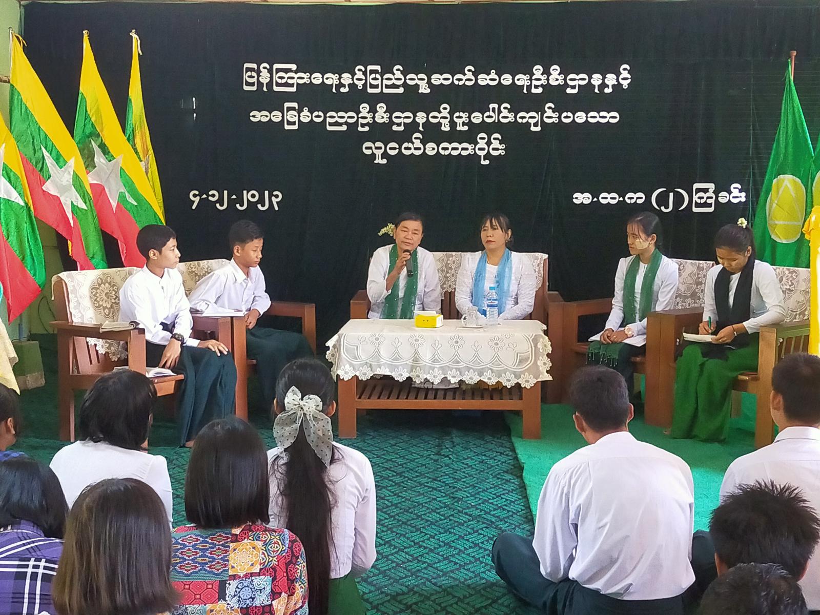 ရှေးဦးစွာ အမှတ်-(၂) အခြေခံပညာအထက်တန်းကျောင်းအုပ်ဆရာမကြီး ဒေါ်နွဲ့နွဲ့ဝင်းက ကျောင်းသား/သူများ စိတ်ဓာတ်၊ စည်းကမ်း၊ ပညာဆောင်ပုဒ်နှင့်အညီ အလေးထားလိုက်နာကြရန်လိုသကဲ့သို့ အသိပညာ၊ အတတ်ပညာဗဟုသုတများဖြင့် ပြည့်စုံသော လူငယ်များဖြစ်လာစေရန် ကြိုးစားကြရန် တိုက်တွန်းပြောကြားပြီးနောက် မြို့နယ်ပြန်ကြားရေးနှင့်ပြည်သူ့ဆက်ဆံရေးဦးစီးဌာန မြို့နယ်ဦးစီးအရာရှိ ဒေါ်ခင်မိုးမြင့်က လူငယ်စကားဝိုင်းကျင်းပရခြင်း၏ ရည်ရွယ်ချက်အား ရှင်းလင်းပြောကြားပါသည်။