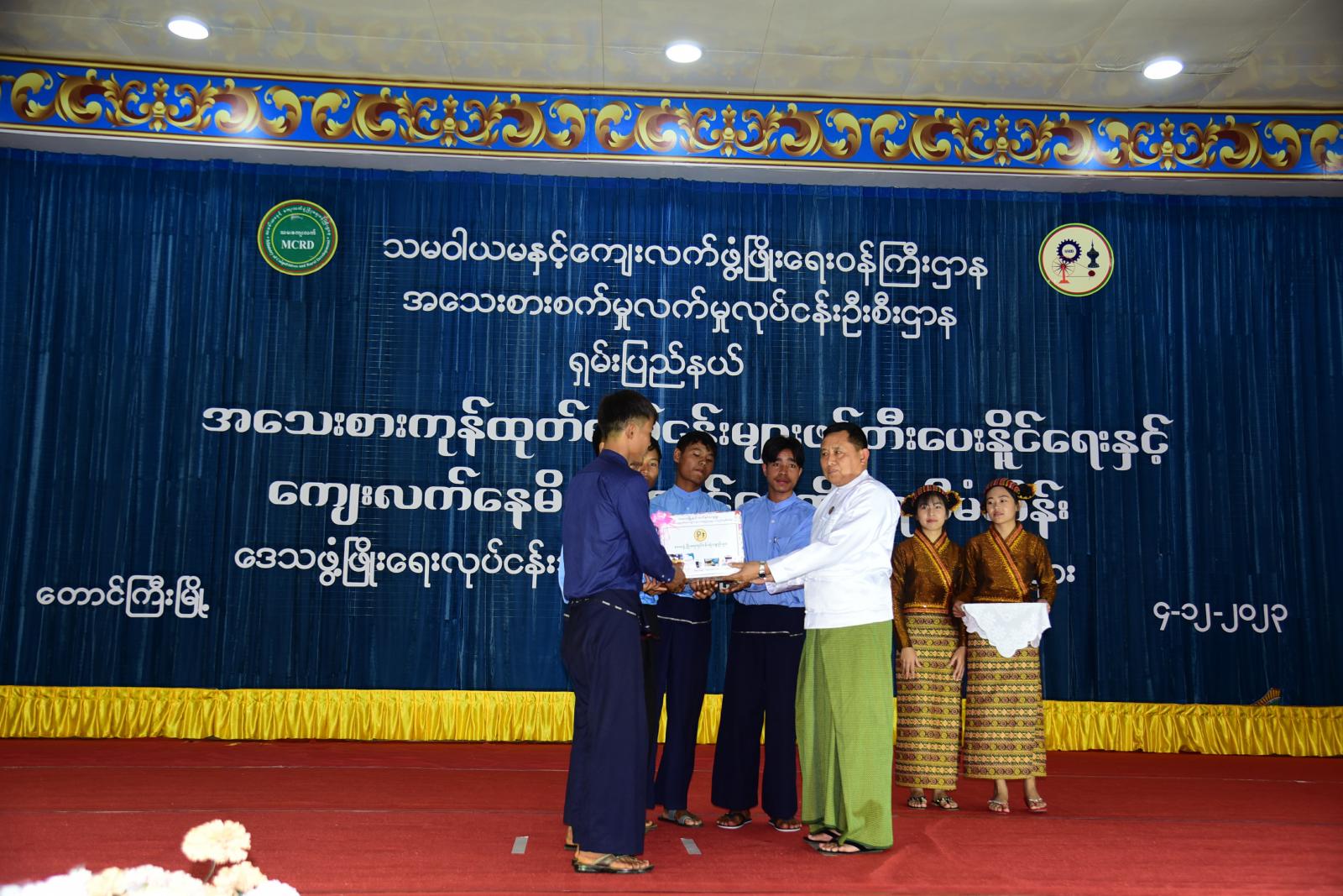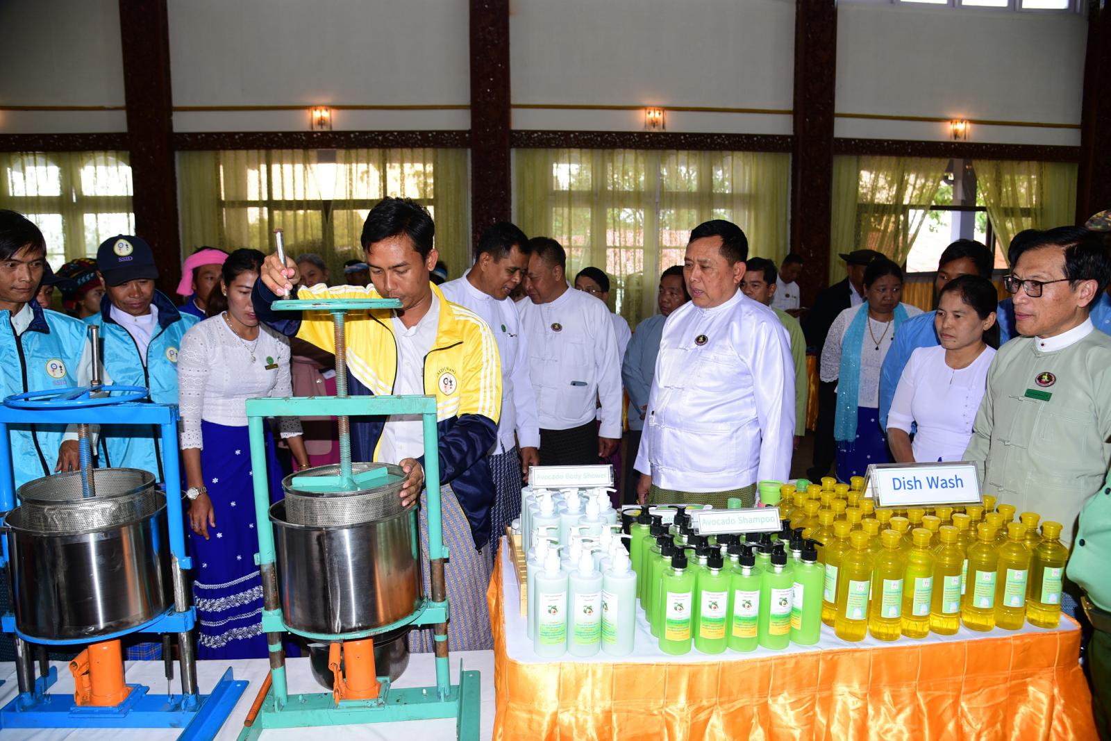 သမဝါယမနှင့်ကျေးလက်ဖွံ့ဖြိုးရေးဝန်ကြီးဌာန၊ အသေးစားစက်မှုလက်မှုလုပ်ငန်းဦးစီးဌာန၊ ရှမ်းပြည်နယ် အသေးစားကုန်ထုတ်လုပ်ငန်းများ ဖန်တီးပေးနိုင်ရေးနှင့် ကျေးလက်နေမိသားစု ဝင်ငွေတိုးရေးစီမံကိန်း ဒေသဖွံ့ဖြိုးရေး လုပ်ငန်းသုံးပစ္စည်းများပေးအပ်ပွဲကို ယမန်နေ့ မွန်းလွဲ(၁)နာရီက တောင်ကြီးမြို့၊ မြို့တော်ခန်းမ၌ ကျင်းပသည်။