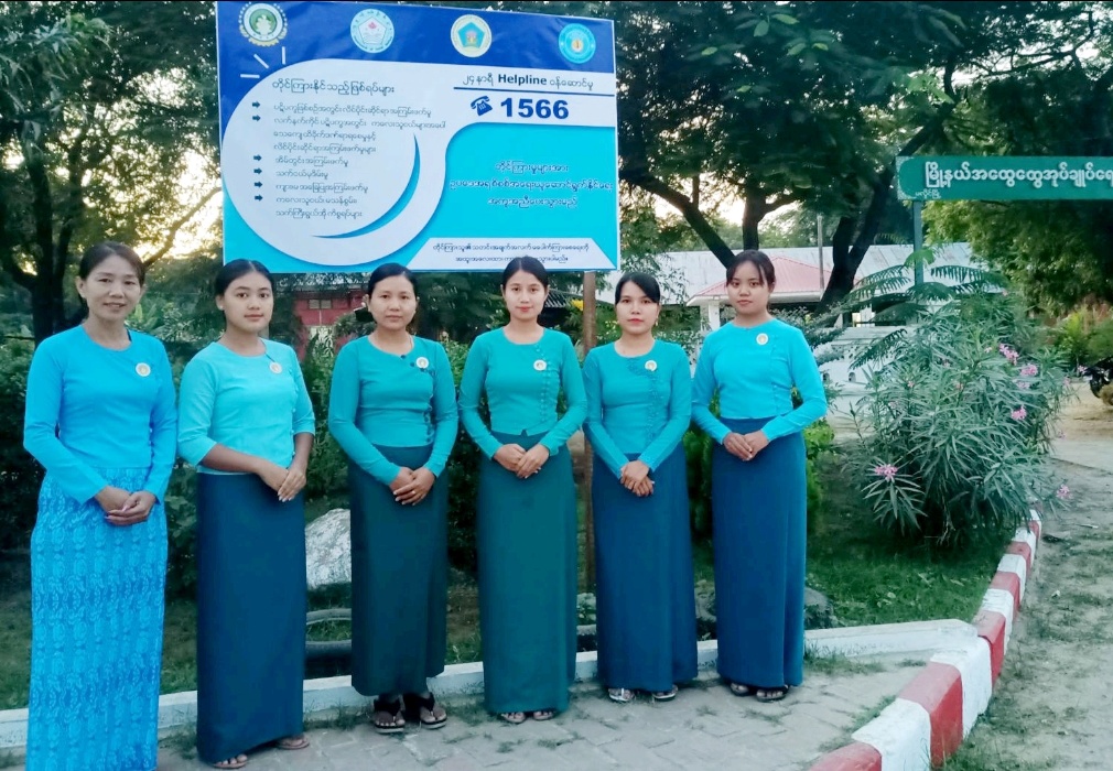 ရှေးဦးစွာ မင်္ဂလာအချိန်ဖြစ်သည့် မွန်းလွဲ(၁)နာရီခွဲအချိန်တွင် မြို့နယ်အမျိုးသမီးရေးရာအဖွဲ့ဝင်များ ဦးဆောင်၍ Helpline Phone နံပါတ်များ ဖော်ပြသည့် billboard ကို စိုက်ထူခဲ့ကြသည်။ အဆိုပါ ဆိုင်းဘုတ်တွင် ပဋိပက္ခဖြစ်စဉ်အတွင်း လိင်ပိုင်းဆိုင်ရာများ အကြမ်းဖက်မှု၊ လက်နက်ကိုင် ပဋိပက္ခအတွင်း ကလေးသူငယ်များအပေါ် သေကျေထိခိုက်ဒဏ်ရာရစေမှုနှင့် လိင်ပိုင်းဆိုင်ရာ အကြမ်းဖက်မှုများ၊ အိမ်တွင်းအကြမ်းဖက်မှု၊ သက်ငယ်မုဒိမ်းမှု၊ ကျားမ အခြေပြု အကြမ်းဖက်မှု၊ ကလေးသူငယ် မသန်စွမ်း သက်ကြီးရွယ်အို ကိစ္စရပ်များကို အများပြည်သူတိုင်ကြားနိုင်ကြောင်း ဖော်ပြပါရှိပြီး (၂၄) နာရီ Helpline ဝန်ဆောင်မှုပေးသွားမည်ဖြစ်သည်။ Helpline Phone နံပါတ်မှာ ၁၅၆၆ ဖြစ်သည်။