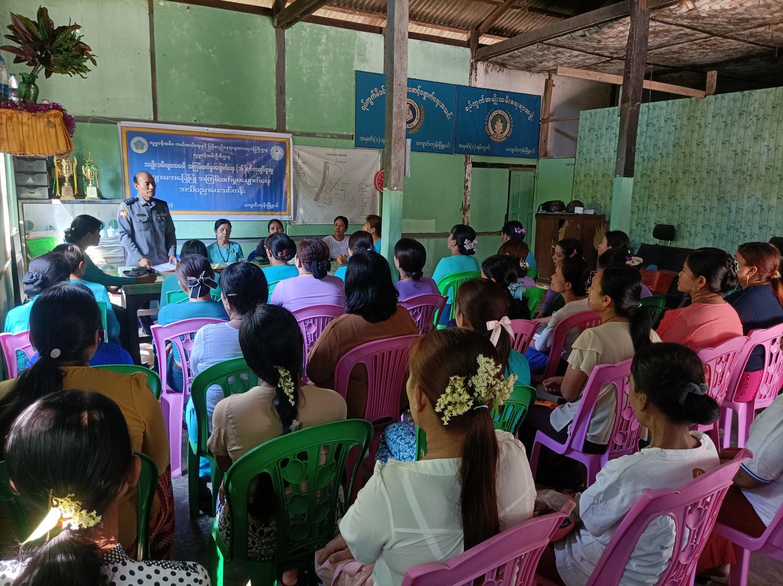ဆက်လက်၍ မြို့မစခန်းမှူး ဒုရဲမှူးဇော်ဝေလင်းကလည်းကောင်း၊ မြို့နယ်ဥပဒေ အရာရှိဒေါ်နီလာဇော်ဝင်းကလည်းကောင်း၊ မြို့နယ်လူမှုဝန်ထမ်းဦးစီးအရာရှိ ဒေါ်သီတာဝင်းကလည်းကောင်း အသီးသီးသင်တန်းပို့ချပေးခဲ့ကြသည်။