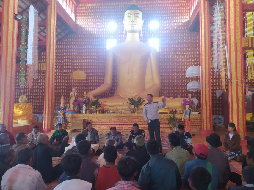တွေ့ဆုံပွဲတွင် မြို့နယ်အထွေထွေအုပ်ချုပ်ရေးဦးစီးဌာန မြို့နယ်အုပ်ချုပ်ရေးမှူးဦးမြင့်စိုး ဦးဆောင်သည့် မြို့နယ်အဆင့်ဌာနဆိုင်ရာများ ပါဝင်သော စစ်ကြောင်းကြီး(၅)ကြောင်းတို့က ဒေသခံတိုင်းရင်းသားပြည်သူများနှင့် တွေ့ဆုံ၍ ကျေးရွာနေပြည်သူများအားလုံခြုံရေး၊ တရားဥပဒေစိုးမိုးရေးနှင့် ဒေသဖွံ့ဖြိုးတိုးတက်ရေးလုပ်ငန်းများကို ဆွေးနွေးပြောကြားရာတွင် လူကုန်ကူးမှုအန္တရာယ်အကြောင်းနှင့် မှုခင်းပိုင်းဆိုင်ရာများ၊ မူးယစ်ဆေးဝါးရောင်းဝယ်သုံးစွဲခြင်း၏ ပြစ်မှုပြစ်ဒဏ်နှင့် ဆိုးကျိုးများ၊ အသက်(၁၀)နှစ်အထက်ရှိသူများအား အီလက်ထရောနစ်စနစ်ဖြင့် ဇီဝအချက်အလက်များ ကောက်ယူနေမှုများ၊ စပါး၊ ပြောင်းများ ပိုးကျပါက ဆောင်ရွက်သင့်သည့် နည်းလမ်းများ၊ စားသုံးဆီဖူလုံစေရေး နေကြာစိုက်ပျိုးကြရန်၊ ကျွဲ၊ နွား၊ ကြက်၊ ဝက်မွေးမြူရာတွင် ရောဂါကူးစက်မှုမှကာကွယ်ရေး၊ သတင်းအမှားအမှန်ခွဲခြားနိုင်ရေး၊ တောင်ယာခုတ်ထွင်ရာတွင် လိုက်နာဆောင်ရွက်ရမည့်အချက်များ၊ ဥပဒေများအကြောင်းနှင့်ကျေးလက်မီးလင်းရေး၊ ကျေးရွာလယ်ယာကုန်ထုတ်လမ်းများအကြောင်း၊ ပွင့်လင်းရာသီတွင် မီးဘေးအန္တရာယ်ရှောင်ရန်၊ ဆောင်ရန်အချက်များကို မြန်မာဘာသာ၊ ရှမ်းဘာသာတို့ဖြင့် အသိပညာပေး ဆွေးနွေးဟောပြောခဲ့ကြသည်။
