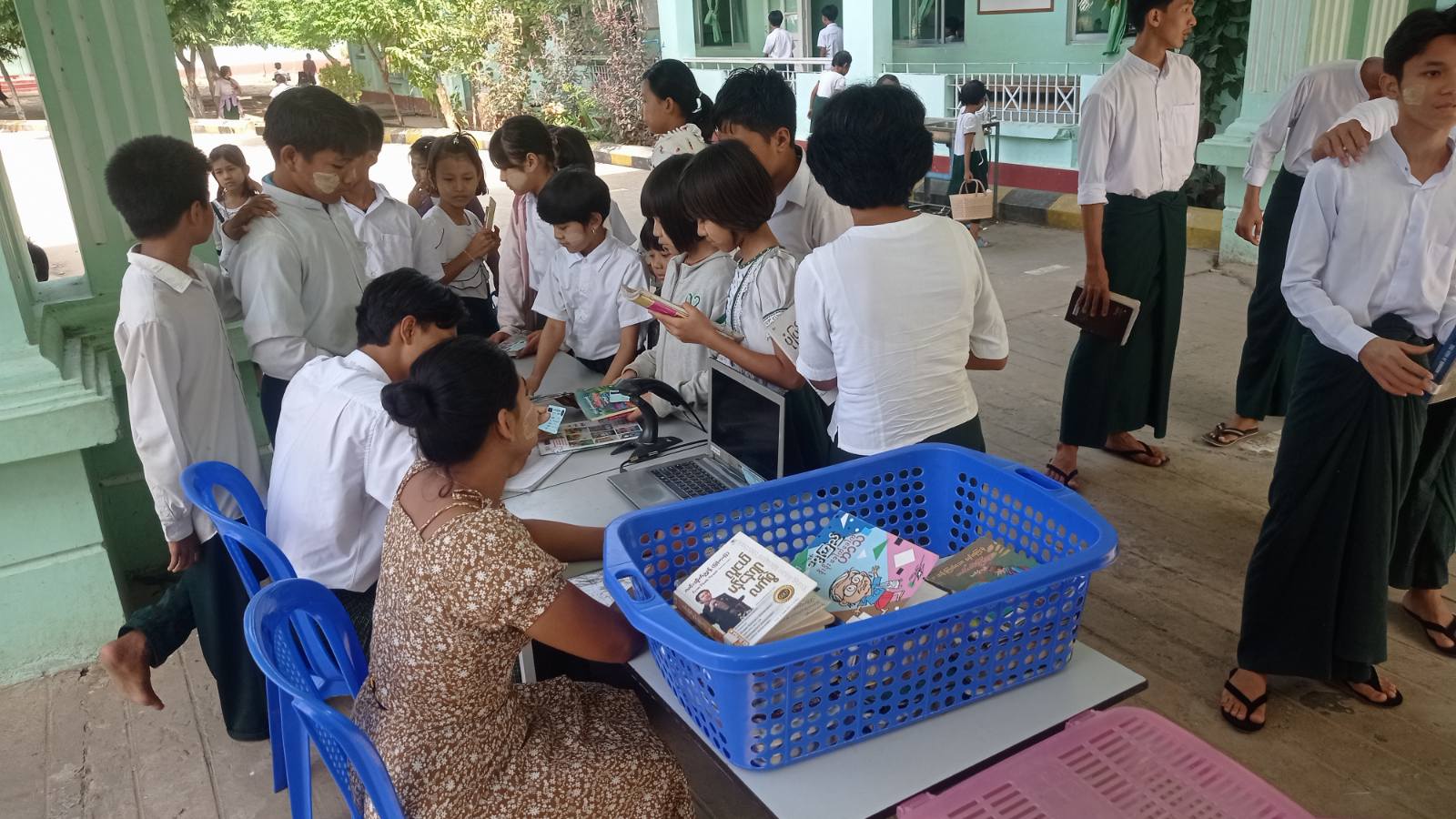 ပျဉ်းမနားမြို့နယ် ပြန်ကြားရေးနှင့်ပြည်သူ့ဆက်ဆံရေးဦးစီးဌာနမှ ရွေ့လျားစာကြည့်တိုက်ယာဉ်ဖြင့် စာဖတ်သူများ လက်ဝယ်အရောက် စာအုပ်များ လိုက်လံငှားရမ်းပေးမှုကို ရပ်ကွက်/ကျေးရွာများအရောက် လိုက်လံငှားရမ်းပေးနေလျက်ရှိရာ ယနေ့နံနက်ပိုင်းတွင် မြို့နယ်ရုံးဝန်ထမ်းများက ဇမ္ဗူသီရိမြို့နယ် အမှတ်(၁၄) အခြေခံပညာအထက်တန်းကျောင်းနှင့် ဒက္ခိဏသီရိမြို့နယ်၊ မဲဒီးကျေးရွာတို့သို့ သွားရောက်ငှား ရမ်းပေးကြသည်။