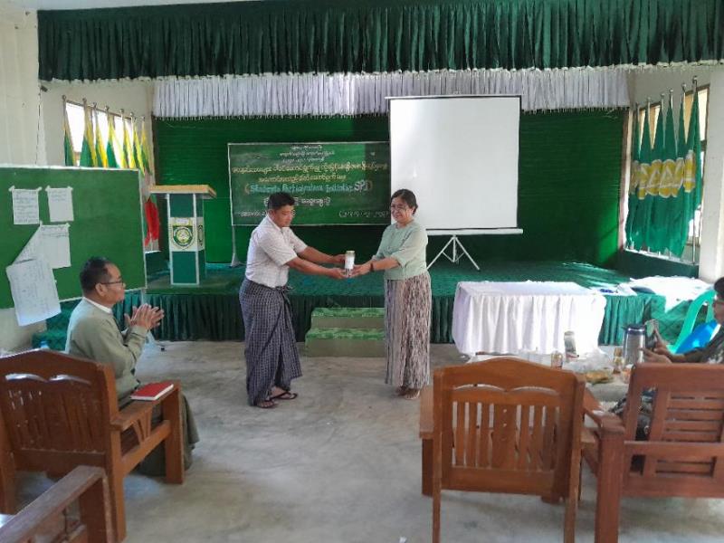 သင်တန်းဆင်းပွဲတွင် ကျောက်ဆည်ခရိုင်ပညာရေးမှူးရုံးမှ လက်ထောက်ပညာရေးမှူး ဆရာမကြီး ဒေါ်လဲ့လဲ့အေးက သင်တန်းဆင်းအမှာစကားပြောကြားခဲ့ပြီး သင်တန်းသား/သင်တန်းသူများက အုပ်စုအလိုက် ကျောင်းသားများပါဝင်ဆောင်ရွက်မှု တိုးမြင့်စေရန်အစပျိုးလှုပ်ရှားမှုများ အကောင်အထည်ဖော်ရေးလုပ်ငန်းခေါင်းစဉ်ဖြင့် စီမံချက်ရေးဆွဲယှဉ်ပြိုင်ကြရာ အုပ်စု(၅)မှ ပထမ၊ အုပ်စု(၃)မှ ဒုတိယ၊ အုပ်စု(၆)မှ တတိယဆုများ ရရှိခဲ့ပြီး ဆုရရှိခဲ့သော အုပ်စုများအား ခရိုင်ပညာရေးမှူး ဒေါက်တာ ဥမ္မာကြည်နှင့်တာဝန်ရှိသူများက ဆုများ ချီးမြှင့်ခဲ့ကြောင်း သိရသည်။