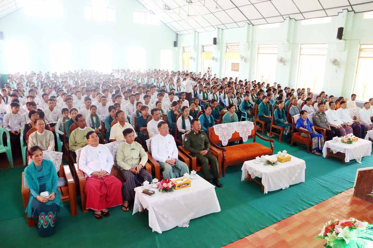 အခမ်းအနားတွင် တိုင်းဒေသကြီးဝန်ကြီးချုပ်ဦးမြတ်ကိုက ဆရာ၊ ဆရာမလောင်းများအနေဖြင့် ကိုယ့်ဒေသကို ချစ်မြတ်နိုးပြီး၊ ဒေသ၏ ဆရာလိုအပ်ချက်များ ဖြည့်ဆည်းပေးနိုင်သော ဆရာ့အတတ် ပညာလက်မှတ်ရ ဆရာ၊ ဆရာမများ၊ ဘွဲ့ရ ဆရာ၊ ဆရာမများပေါ်ထွက်လာမှာဖြစ်သောကြောင့် ဝမ်းသာဂုဏ်ယူမိကြောင်း၊ နိုင်ငံတစ်နိုင်ငံဖွံ့ဖြိုးတိုးတက်ရေးအတွက် တန်ဖိုးကြီးသောအရင်းအနှီးသည် ပညာရေးဖြစ်ကြောင်း၊ ပညာသည် မကုန်ခမ်းနိုင်သော အရင်းအနှီးဖြစ်သည့်အတွက် ပညာရေး အဆင့်အတန်းမြင့်မားအောင် နိုင်ငံတော်အနေဖြင့် ပညာရေးပြုပြင်ပြောင်းလဲမှုများပြုလုပ်ပြီး သင်ရိုးညွှန်းတမ်းများကို ခေတ်နှင့်အညီ ပြောင်းလဲရေးဆွဲ အကောင်အထည်ဖော်ဆောင်ရွက်လျက်ရှိ ကြောင်း၊ ပညာတတ်သူ၊ စိတ်စေတနာကောင်းသူ၊ ကိုယ်ကျင့်တရားကောင်းသူ၊ ထက်မြက်သူ၊ ဝီရိယရှိသူများပေါ်ထွက်လာအောင်မွေးဖွားနိုင် သောဆရာများ၏ အခန်းကဏ္ဍသည် လူ့ဘောင်လောကအတွက် အလွန်အရေးကြီး အရေးပါလှကြောင်း၊ တိုင်းဒေသကြီး အတွင်းမူလတန်းအဆင့်၊ အလယ်တန်းအဆင့် သင်ဆရာ၊ ဆရာမများ လိုအပ်ချက်များပြားလျက်ရှိကြောင်း၊ အခြေခံပညာကျောင်းများတွင်ဆရာ၊ ဆရာမအင်အားနည်းပါးပြီး သင်ကြားသင်ယူမှုထိရောက် အဆင်ပြေမှု မရှိဖြစ်နေကြောင်း၊ ပညာရေးဒီဂရီကောလိပ်တွင် ပညာသင်ယူပြီး မူလတန်းဆရာ့အတတ်ပညာ လက်မှတ်ရသူများ၊ B.Sc (Education)၊ B.A (Education)ဘွဲ့ရသူများဖြစ်လာသည့်အခါ အနာဂတ် မျိုးဆက်သစ်တို့၏ သင်ကြားသင်ယူမှုကို ထိရောက်စွာပံ့ပိုးကူညီပေးနိုင်မည်ဟု ယုံကြည်ကြောင်း၊ ပညာပြည့်၀နှလုံးလှသူများအဖြစ်လောကကောင်းကျိုးသယ်ပိုးဆောင်ရွက်နိုင်သူများဖြစ်အောင် ကြိုးစားကြရန် ပညာရေးဖြင့် ဆရာ့အတတ်ပညာတို့ကို အမြဲတမ်းဖတ်ရှုလေ့လာခြင်း၊ ဆွေးနွေးခြင်းတို့ဖြင့် မိမိ၏ပညာရည်မြင့်မားတိုးတက်အောင်မြှင့်တင် ဆောင်ရွက်ရန်ကျန်းမာပျော်ရွှင်စွာဖြင့် ပညာကို ကြိုးစားသင်ယူကြရန် လိုအပ်ကြောင်းပြောကြားသည်။ ထို့နောက် ထားဝယ်ပညာရေးဒီဂရီကောလိပ်ကျောင်းအုပ်ကြီး ဒေါ်နီနီသန်းက သင်တန်းနှင့်ပတ်သက်၍ ရှင်းလင်းတင်ပြသည်။