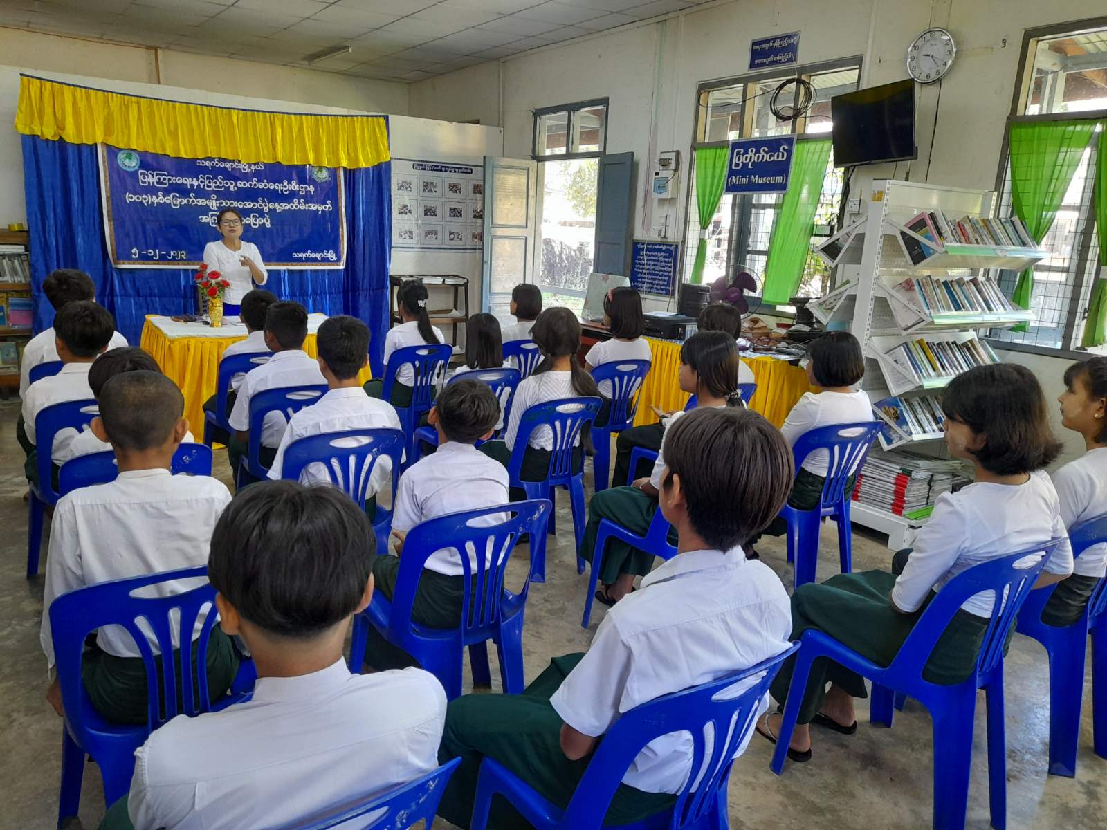 ထို့နောက် သရက်ချောင်းမြို့နယ်၊ ပြန်ကြားရေးနှင့်ပြည်သူ့ဆက်ဆံရေးဦးစီးဌာနမှ ဝန်ထမ်းများ ကျောင်းသား/သူများ လေ့လာကြည့်ရှုနိုင်ရန် ဒေသလှုပ်ရှားမှု မှတ်တမ်းဓါတ်ပုံများ၊ မူးယစ်ဆေးဝါးအန္တရာယ် တားဆီးကာကွယ်ရေးနံရံကပ်များအား ခင်းကျင်းပြသခြင်းနှင့် ကျောင်းသား/သူများ စာဖတ်ခြင်း အလေ့အထကောင်းများရရှိစေရန် ရည်ရွယ်၍ အသစ်ရောက်ရှိလာသော စာအုပ်စာစောင်များ ခင်းကျင်း ပြသခဲ့ကြောင်း သိရသည်။