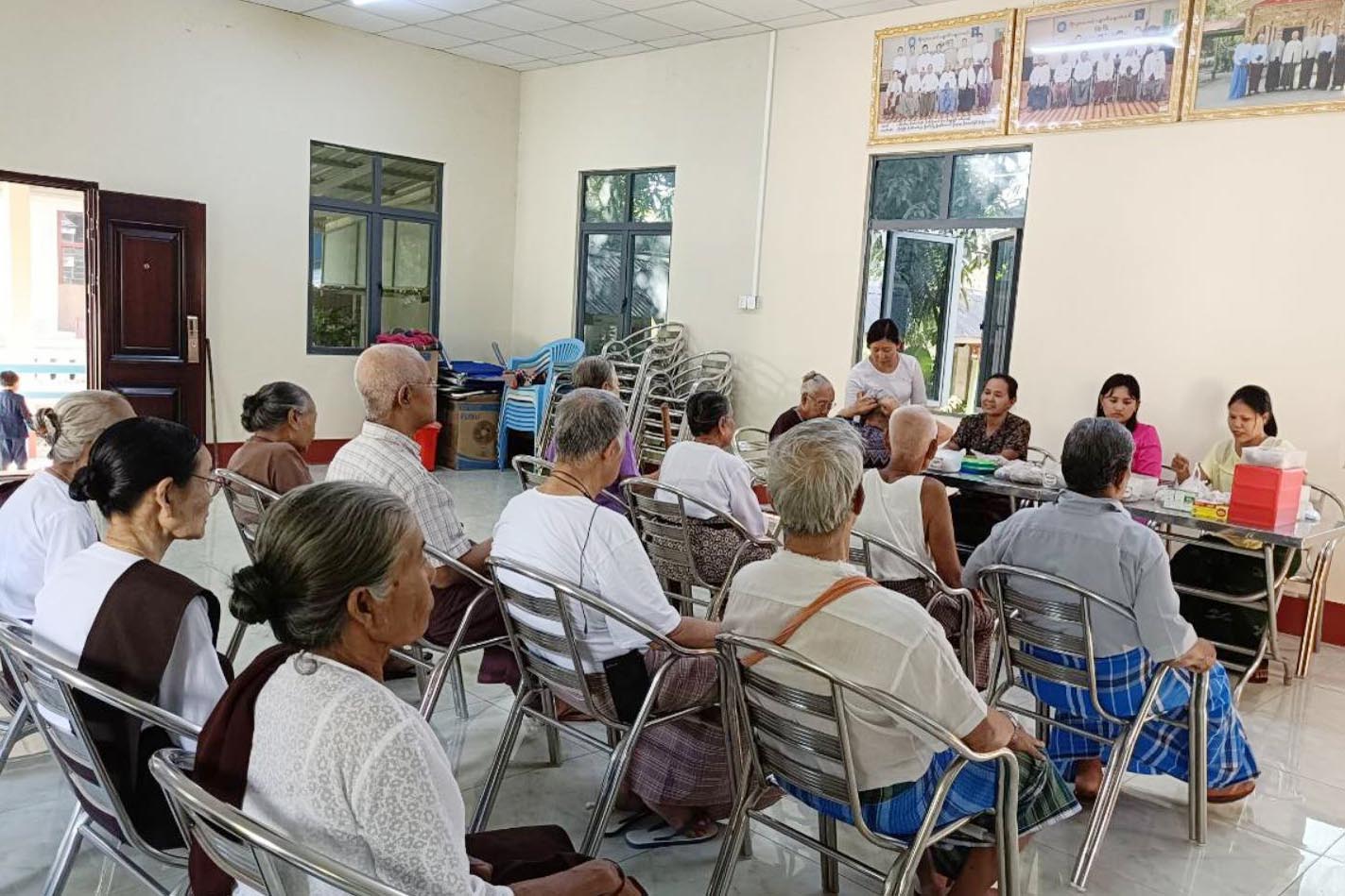 ထိုသို့ ဆောင်ရွက်ပေးရာတွင် ဖြူးမြို့နယ်တိုင်းရင်းဆေးကုဌာနမှ မြို့နယ်တိုင်းရင်းဆေးမှူးဒေါ်ဝင်းဝင်းအေး၊ ဖြူးမြို့နယ်(၁၆)ခုတင်ဆံ့တိုင်းရင်းဆေးရုံမှ ဒုတိယဆေးရုံအုပ်ဒေါ်စိုးလတ်မီ၊ ဒုတိယတိုင်းရင်းဆေးမှူးများဖြစ်သော ဒေါ်တင်နွယ်ဝင်း၊ ဒေါ်ဇင်မင်းထွန်းနှင့် ဆရာ/ဆရာမများက ဖြူးဘိုးဘွားရိပ်သာရှိ အဘိုး(၈)ဦး၊ အဘွား(၃၁)ဦး၊ စုစုပေါင်း(၃၉)အား သွေးပေါင်ချိန်တိုင်းပေးခြင်း၊ နှလုံး၊ ဆီးချို သွေးချိုစစ်ဆေးပေးခြင်း၊ ခြေလက်ထုံကျင်၊ အအေးမိနှာစေးခြင်းများနှင့် လက်တလောရာသီကြောင့်ဖြစ်ပေါ်နေသည့် ကျန်းမာရေးအခြေအနေများကိုစစ်ဆေးကာ လိုအပ်သည့်တိုင်းရင်းဆေးများပေး၍ ကျန်းမာရေးစောင့်ရှောက်မှုပေးခဲ့ကြောင်း သိရသည်။