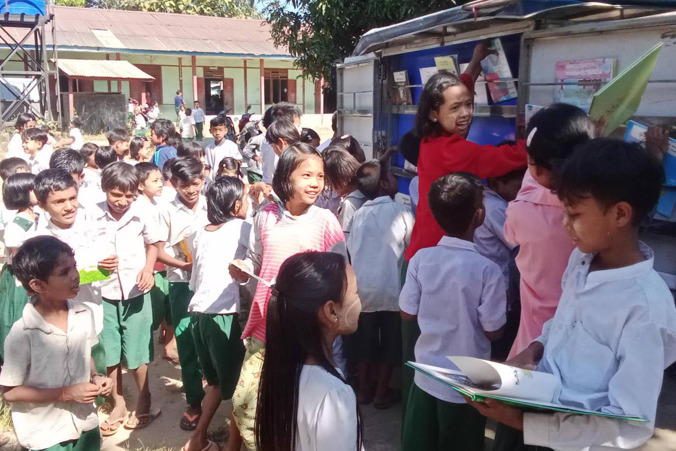 ဆက်လက်၍ အလယ်တန်းအဆင့် ကျောင်းသား/ကျောင်းသူများအား လွတ်လပ်ရေးနေ့ဖြစ်ပေါ်လာပုံ အသိပညာပေးနံရံကပ်စာစောင်များပြသပေးပြီး KG တန်း၊ မူလတန်းအရွယ် ကလေးငယ်များအား သုံးဘီးဆိုင်ကယ်ဖြင့် ကလေးစာပေများ ဖတ်ရှုစေခြင်းများကို ဆောင်ရွက်ပေးကြကြောင်း သိရသည်။