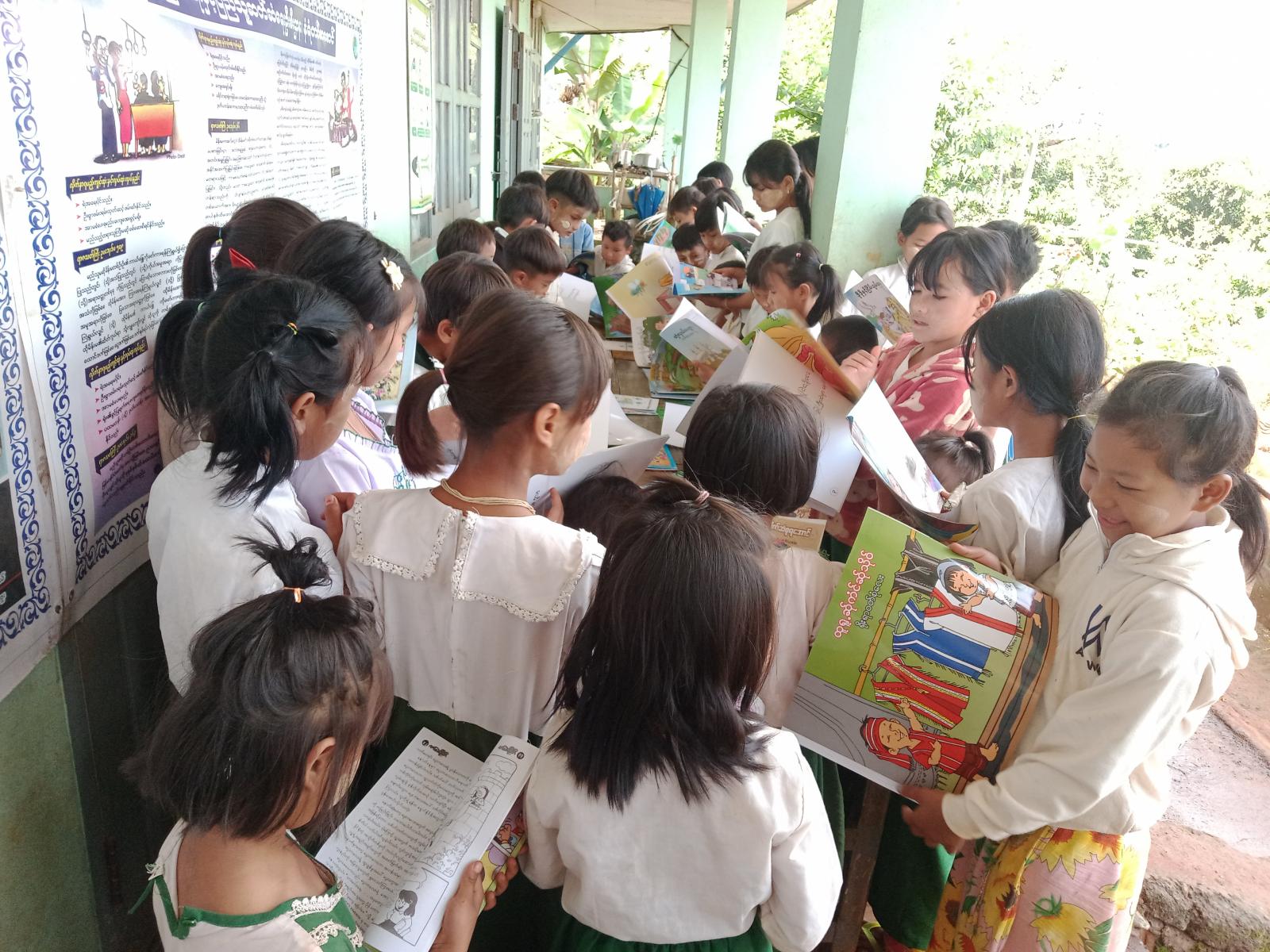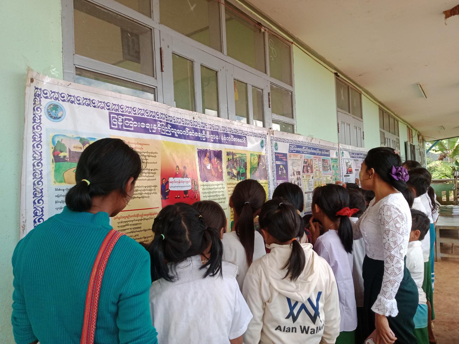 ထို့နောက် ကျောင်းသား၊ကျောင်းသူများအား ပုံပြင်နှင့်ကဗျာများ၊ အခြားအသိပညာပေးစာအုပ်များပြသခြင်း၊ နယ်လှည့်စာကြည့်တိုက်ကွင်းဆင်းဆောင်ရွက်ပေးကာ လူကုန်ကူးမှုအန္တရာယ်၊ မူးယစ်ဆေးဝါးအန္တရာယ်၊ သက်ငယ်မုဒိမ်းကင်းစင်ရေး ကြိုတင်ကာကွယ် အသိပညာပေးနံရံကပ်စာစောင်များကို ပြသခဲ့ကြောင်း သိရသည်။