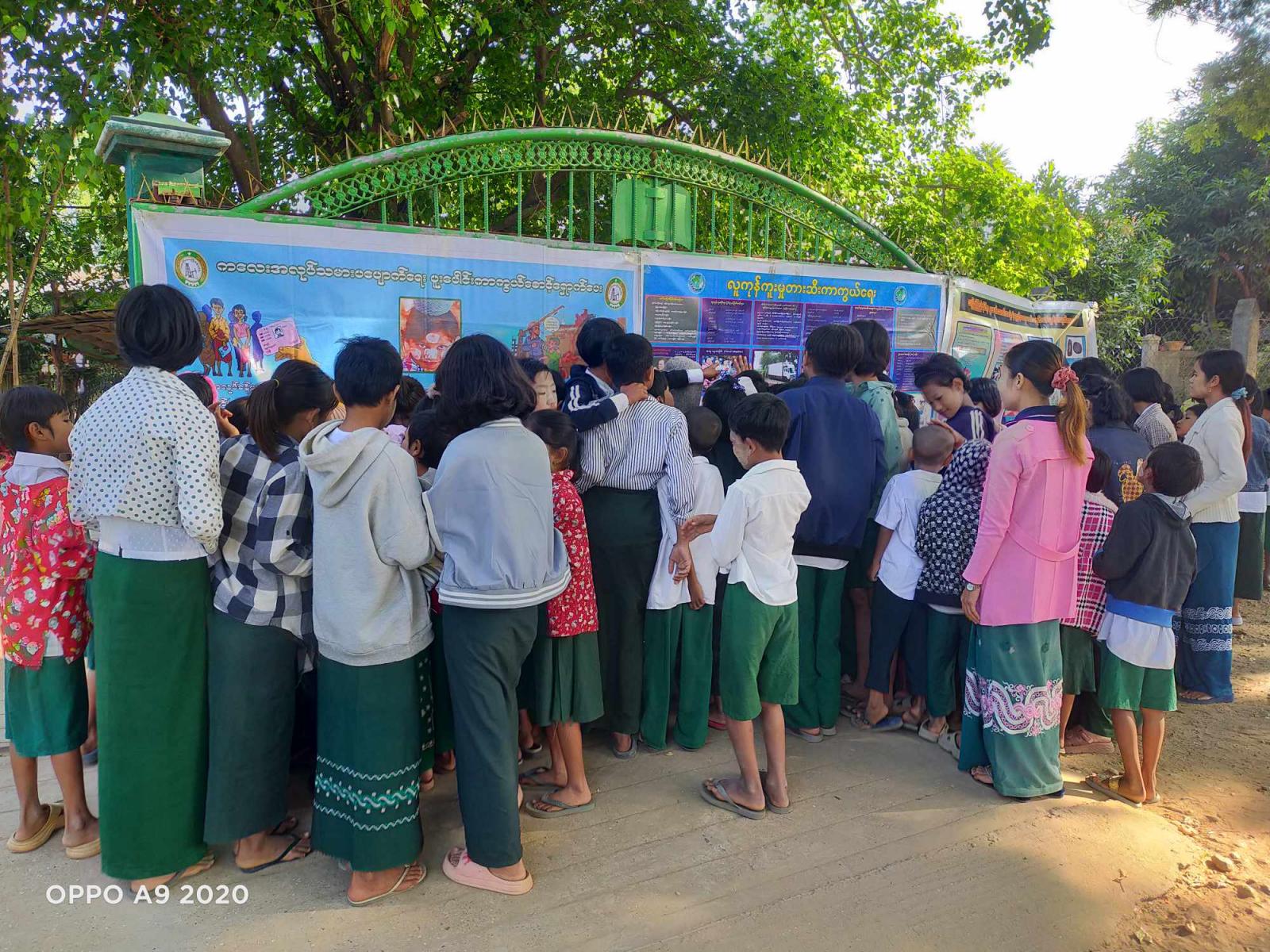 ဆက်လက်၍ ပြန်ကြားရေးနှင့်ပြည်သူ့ဆက်ဆံရေးဦးစီးဌာနမှ ဝန်ထမ်းများက ကလေးများ ဉာဏ်စွမ်းရည်ဖွံ့ဖြိုးစေရေးနှင့် စာဖတ်သည့် အလေ့အကျက့်ရရှိစေရန်၊ စာအုပ်စာစောင်များ ဖတ်ရှုစေခြင်း၊ မူးယစ်ဆေးဝါးအန္တရာယ်၊ လူကုန်ကူးမှုအန္တရာယ်၊ ကလေးအလုပ်သမားပပျောက်ရေး အသိပညာပေး နံရံကပ်စာစောင်များကို ပြသဆောင်ရွက်ပေးခဲ့ကြောင်း သိရသည်။