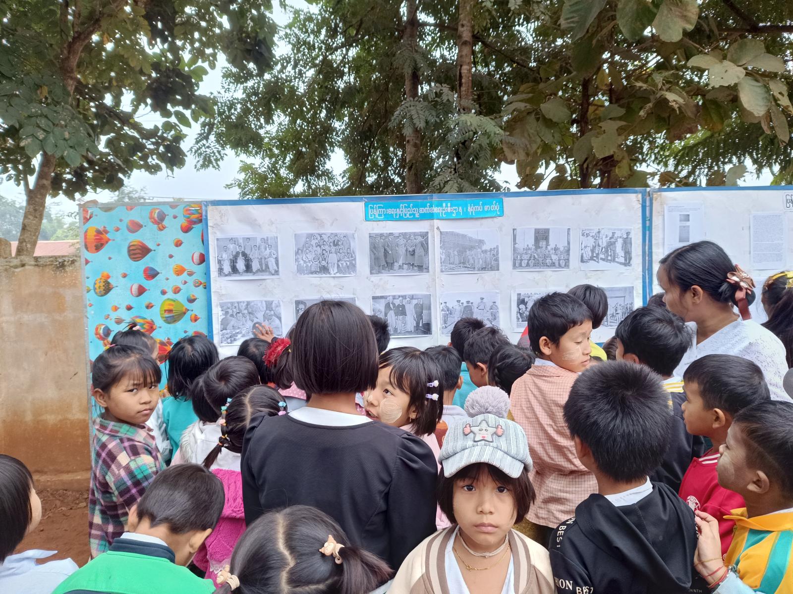 ထို့နောက် ကျောင်းသား/ကျောင်းသူများလေ့လာရန် နံရံကပ်စာဆောင်နှင့် ဓာတ်ပုံများပြသပေးခဲ့ကြောင်း သိရပါသည်။