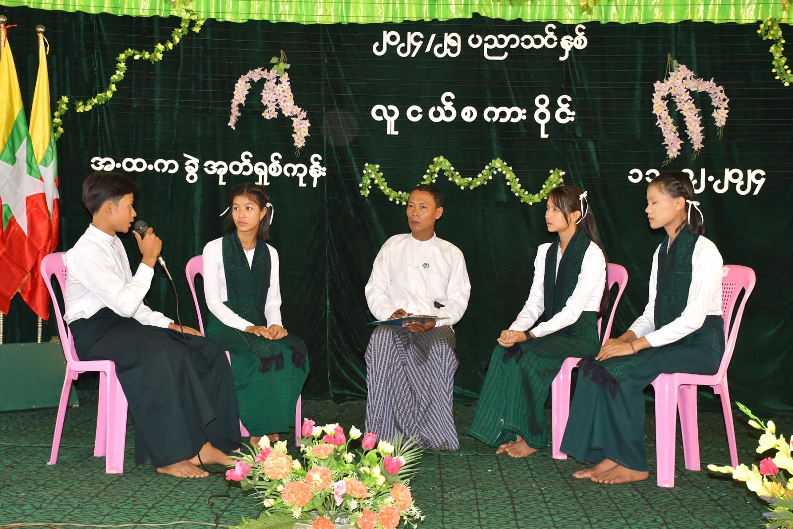 လူငယ်စကားဝိုင်းတွင် ပြန်/ဆက် ဦးစီးအရာရှိ ဦးဇော်မင်းထွန်းဦးဆောင်၍ Grade-10 မှ မဇင်မေဖြိုးက လူငယ်နှင့်စာပေ ၊ Grade-10 မှ မမေသက်နိုင်က လူငယ်နှင့်ကိုယ်ကျင့်တရား ၊Grade-10 မှ မသင်းပပလှိုင်က လူငယ်နှင့်အားကစား ၊ Grade-10 မှ မောင်ပ်ုင်ဇင်သူက လူငယ်နှင့်မူးယစ်ဆေးဝါးခေါင်းစဥ်တို့ဖြင့် ဆွေးနွေးခဲ့ကြရာ တက်ရောက်ကြသည့် ကျောင်းသား/ သူများ၏ ဆွေးနွေးမေးမြန်းမှုများကို ပြန်လည် ဖြေကြားခဲ့ကြသည်။