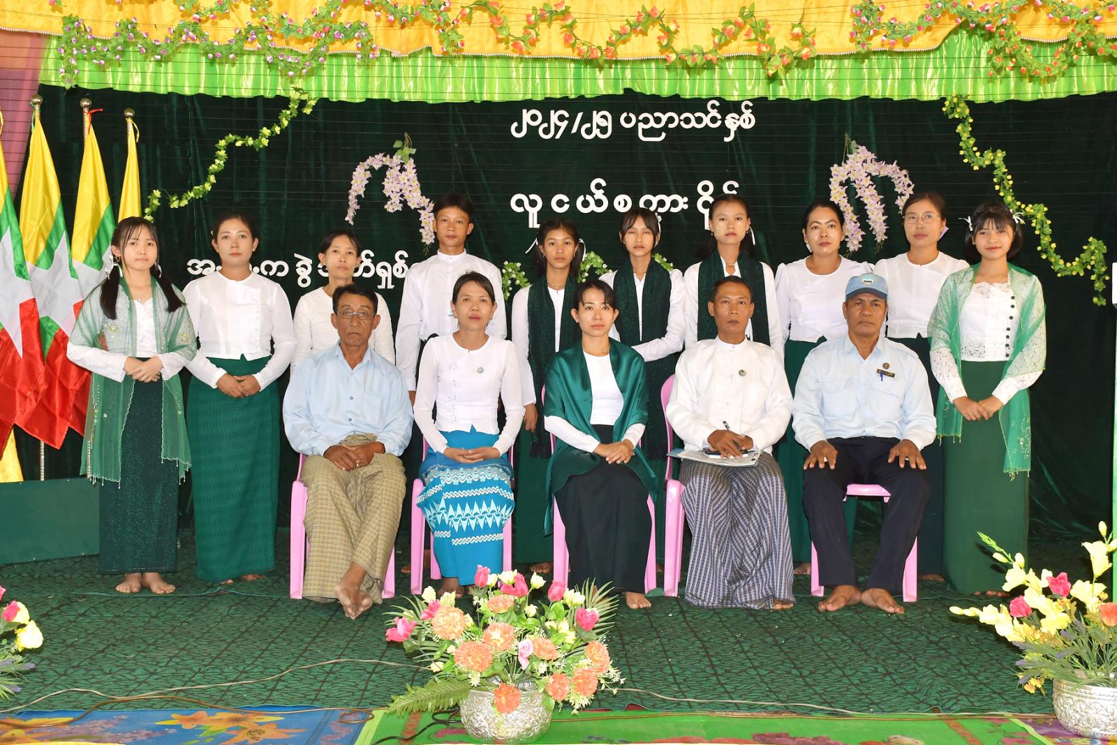 အခမ်းအနားတွင် ကျောင်းအုပ်ဆရာမကြီး ဒေါ်အိဖြူစင်က ကျေးဇူးတင်စကားပြန်လည်ပြောကြား၍ စုပေါင်းမှတ်တမ်းဓါတ်ပုံရိုက်ကူးခဲ့ကြသည်။