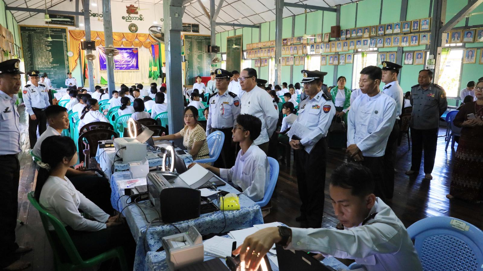 အရွယ်ရောက်ပြီးသည့်နိုင်ငံသားအားလုံး ဥပဒေနှင့်အညီ နိုင်ငံသားစိစစ်ရေးကတ်ပြား တစ်မျိုးမျိုးကို ကိုင်ဆောင်နိုင်စေရန် လူဝင်မှုကြီးကြပ်ရေးနှင့်ပြည်သူ့အင်အားဝန်ကြီးဌာန ကရင်ပြည်နယ်၊ ဘားအံမြို့နယ်ဦးစီးမှူးရုံးအနေဖြင့် ပန်းခင်းစီမံချက်အဆင့်(၃)ဖြင့် အိမ်ထောင်စုလူဦးရေစာရင်းနှင့် နိုင်ငံသားစိစစ်ရေးကတ်ပြားများကို ကွင်းဆင်း ဆောင်ရွက်ပေးလျက်ရှိရာ ယနေ့နံနက်ပိုင်းက ဘားအံမြို့၊ အမှတ်(၁)အခြေခံပညာအထက်တန်းကျောင်း မြသံလွင်ခန်းမ၌ နိုင်ငံသားစိစစ်ရေးကတ်ပြားများပေးအပ်ပွဲကို ကျင်းပခဲ့သည်။
