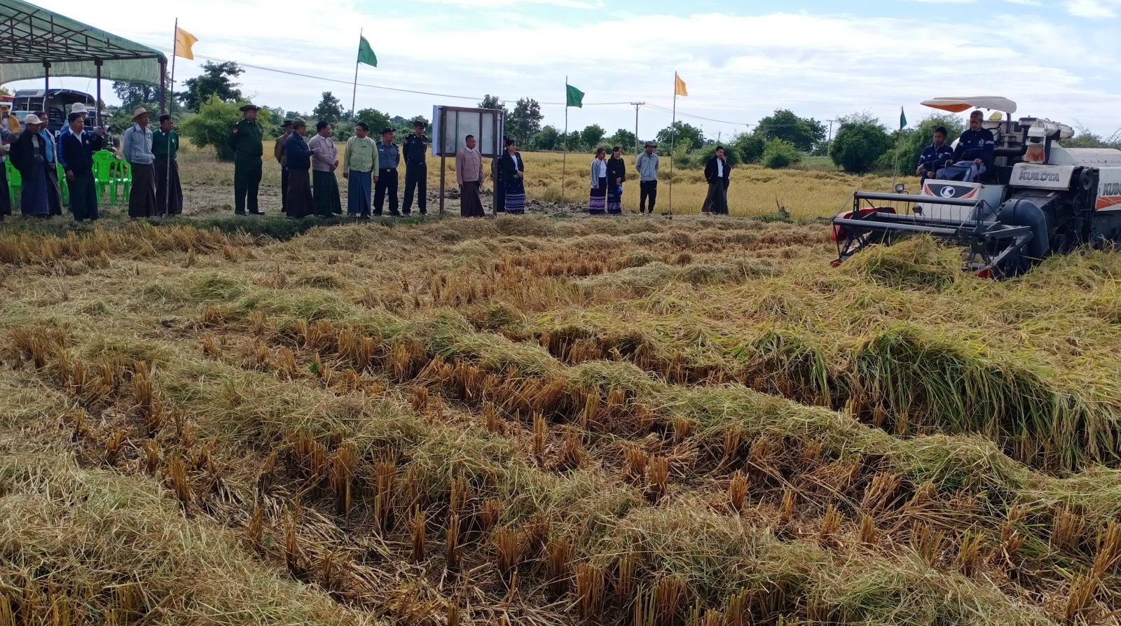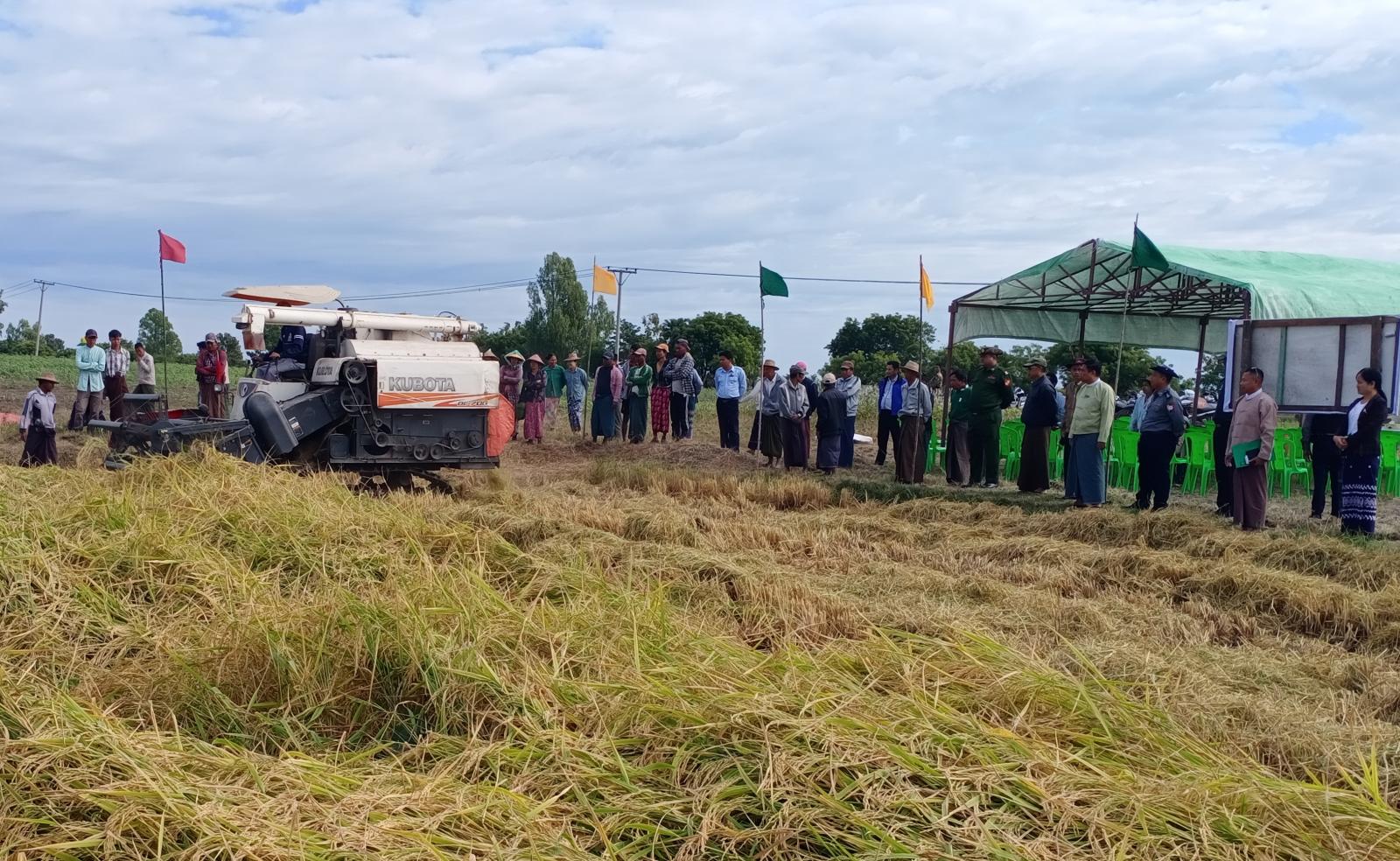 မိုးစပါးစံကွက်ရိတ်သိမ်းပွဲသို့ ခရိုင်စီမံအုပ်ချုပ်ရေးအဖွဲ့ဥက္ကဋ္ဌ ဦးစောထွန်းဦးနှင့်အဖွဲ့ဝင်များ၊ မြို့နယ်စီမံအုပ်ချုပ်ရေးအဖွဲ့ဝင်များ၊ ခရိုင်/မြို့နယ်စိုက်ပျိုးရေးဦးစီးဌာနမှ တာဝန်ရှိသူများ၊ ကြေးတိုင်နှင့်မြေစာရင်းဦးစီးဌာနမှ တာဝန်ရှိသူများ၊ စက်မှုလယ်ယာဦးစီးဌာနမှ တာဝန်ရှိသူများ၊ ဒေသခံတောင်သူများတက်ရောက်ကြပြီး စံကွက်ရိတ်သိမ်းရာ တစ်ဧကလျှင် စပါးပျမ်းမျှအထွက်နှုန်း အစို ၉၂ တင်း၊ အခြောက် ၈၄ တင်းထွက်ရှိကြောင်း သိရသည်။