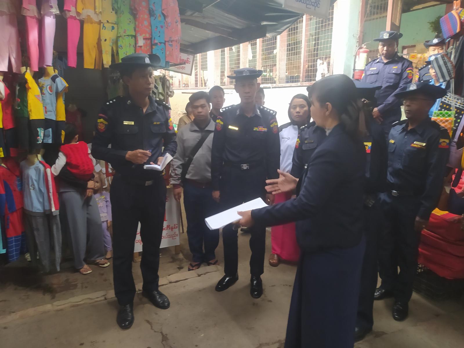 ထို့နောက် မီးလန့်မှု/မီးလောင်မှုများဖြစ်ပွားလာပါက မီးငြှိမ်းသတ်ရေးလုပ်ငန်းများအမြန်ဆုံး ဆောင်ရွက်နိုင်ရေးအတွက် မီးသတ်ရေကန်နှင့် မီးသတ်ရေငုတ်များအား ထပ်မံစစ်ဆေးခဲ့ပြီး တိုင်းဒေသကြီးမီးသတ်ဦးစီးမှူးမှ မီးသတ်ရေငုတ်များ လိုအပ်သည့်ရေ pressure ရရှိအောင် ဆောင်ရွက်ထားရန် ဈေးအရန်မီးသတ်တပ်ဖွဲ့ဝင်များနှင့် တာဝန်ရှိသူများကို လိုအပ်သည်များ မှာကြားခဲ့သည်။