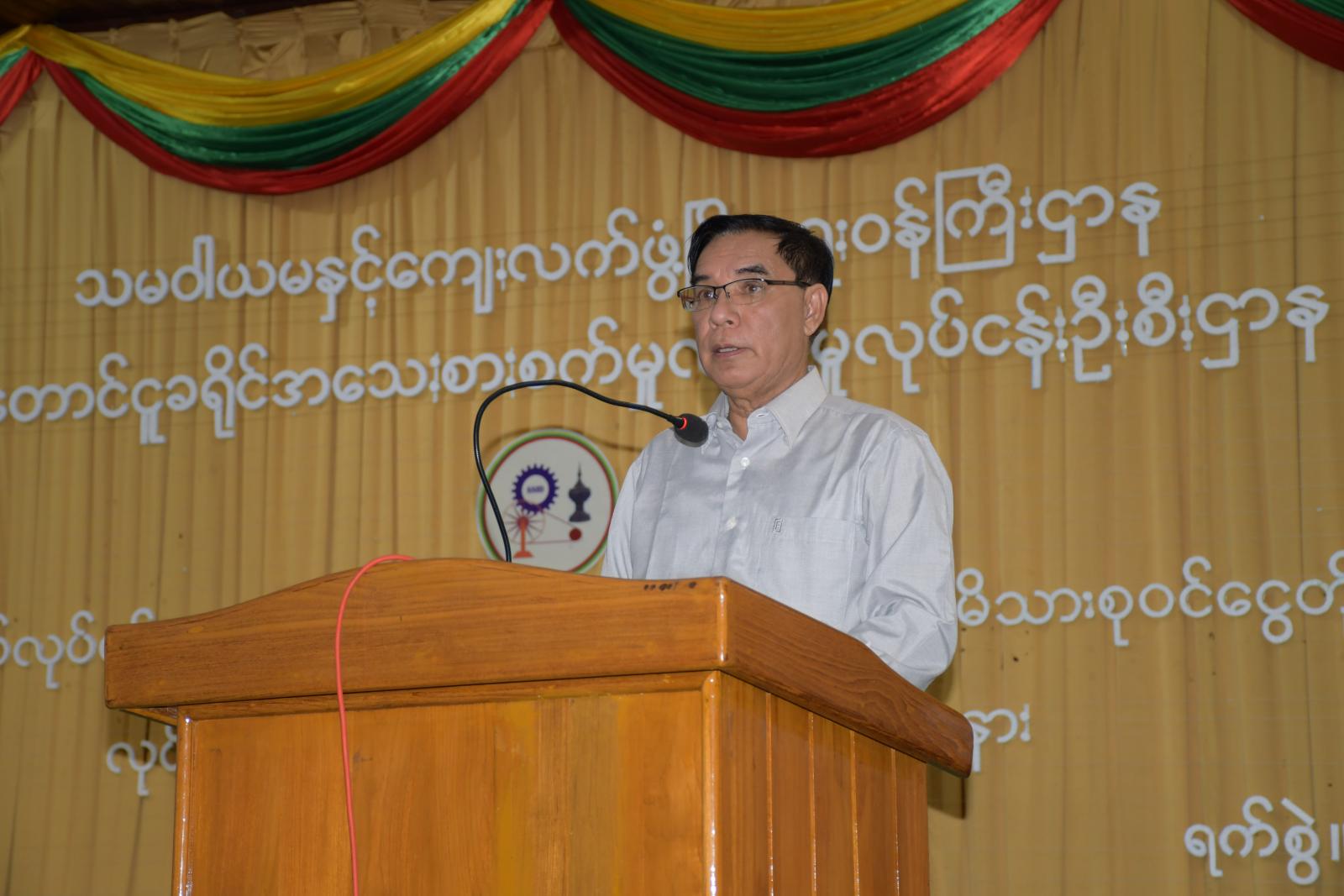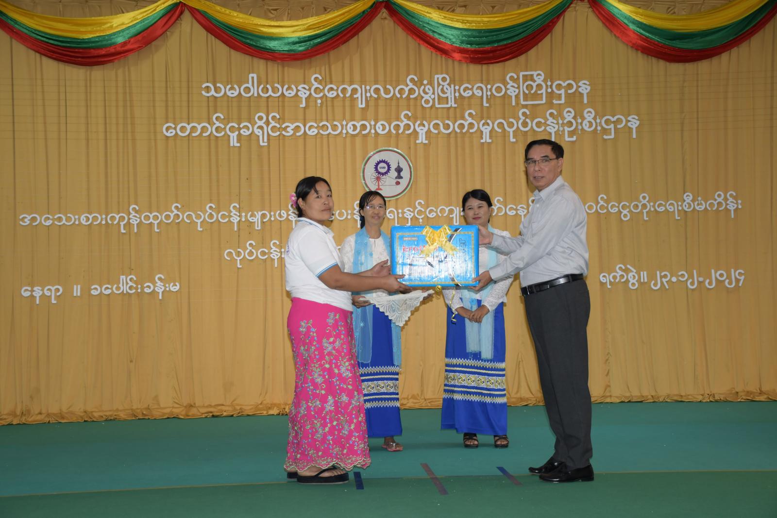 ရှေးဦးစွာ ပဲခူးတိုင်းဒေသကြီးအစိုးရအဖွဲ့ဝန်ကြီးချုပ်ဦးမျိုးဆွေဝင်းက အမှာစကားပြောကြားရာတွင် အသေးစားကုန်ထုတ်လုပ်ငန်းများ ဖန်တီးပေးနိုင်ရေးနှင့် ကျေးလက်နေမိသားစုများ ဝင်ငွေတိုးရေးစီမံကိန်းဖြင့် ပဲခူးတိုင်းဒေသကြီးအတွင်း သင်တန်း(၁၆)ခုဖွင့်လှစ်ရန် လျာထားဆောင်ရွက်လျက်ရှိပြီး တောင်ငူခရိုင်အတွင်း အသေးစား၊ အငယ်စား စီးပွားရေးလုပ်ငန်းများ ပေါ်ထွန်းလာစေရန်ရည်ရွည်၍ တောင်ငူမြို့နယ်၊ ငါးဖယ်အင်းကျေးရွာတွင် ဖွင့်လှစ်ခဲ့သည့် တန်ဖိုးမြှင့်စားသောက်ကုန်ထုတ်လုပ်မှုနည်းပညာသင်တန်း၊ ရေတာရှည်မြို့နယ် ကြံသနွယ်ကျေးရွာအုပ်စုတွင်ဖွင့်လှစ်ခဲ့တဲ့ အခြေခံစက်ချုပ်နည်းပညာသင်တန်းနှင့် အုတ်တွင်းမြို့နယ်ဥယျာဥ်တော်ကျေးရွာအုပ်စုမှာ ဖွင့်လှစ်ခဲ့သည့် လူသုံးကုန်ထုတ်လုပ်မှုနည်းပညာသင်တန်းများမှ လုပ်ငန်းထူထောင်နိုင်စေရန် သင်တန်းဆင်းသတ်မှတ်ချက်နှင့်အညီ ရွေးချယ်ထားသည့် သင်တန်းသူ(၁၅)ဦးအား လုပ်ငန်းသုံးပစ္စည်းများ ပေးအပ်သွားမှာဖြစ်ကြောင်း အမှာစကားပြောကြားသည်။